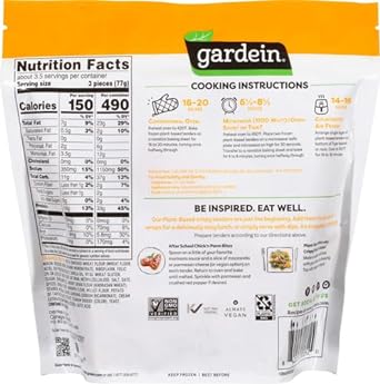 Contains one 9-ounce bag of Gardein Seven Grain Crispy Tenders10Juicy plant-based chick'n breaded with wholesome grains including oats, quinoa and millet10Make quick and delicious meat-free tenders in just 8 minutes10These frozen tenders are dairy free, certified vegan and Non-GMO Project Verified10Air Fryer Cooking Tip: Arrange frozen tenders in single layer on bottom of fryer basket or rack at 400°F for 14-16 minutes. Cooking times vary, so make sure product reaches 165°F on your meat thermometer10Gardein Seven Grain Crispy Tenders are vegan plant-based chick'n strips. In just 8 minutes, our meatless tenders are easy to prepare and put a tasty spin on salads, wraps and more. Made with wholesome grains including oats, quinoa and millet, these plant-based chick'n strips are sure to keep you satisfied. Serve these Gardein tenders as a delicious flexitarian option any day of the week