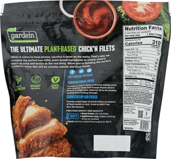 One 15 oz. bag Gardein Ultimate Plant Based Chick'n Filets, Vegan, Frozen10Savor crispy, breaded, plant-based patties that look, cook, taste and satisfy like real chicken10Enjoy these non-GMO, vegan chick'n filets that contain no dairy ingredients and 23 g protein per serving10Add your favorite veggies for a delicious sandwich, or serve with pasta and your favorite sauce for a tasty dinner option10Ideal vegan choice for family dinners, picnics or tasty Meatless Monday meals10Finally, a vegan chicken alternative you can really sink your teeth into. Gardein Ultimate Plant-Based Chick'n Filets are a mouthwatering plant-based chicken alternative. These crisp, breaded, plant-based chick'n filets look, cook, taste and satisfy like real chicken. Each meatless filet is vegan and Non-GMO Project Verified, contains no dairy ingredients and provides 23 grams of protein per serving. Whether you prefer adding your favorite veggies for a flavorful sandwich, or serving with pasta and your favorite sauce for a tasty dinner, these meatless patties make a mouthwatering chicken substitute. Gardein: Delicious Plant-Based Protein