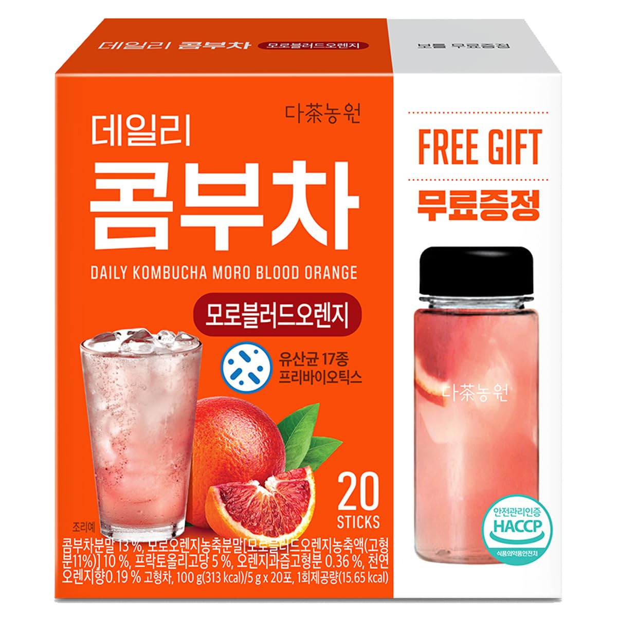 Garden Kombucha Tea, Powder 5G X 20 Sachets (100G/3.52Oz) Probiotics, Prebiotics, Sugar Free, Black Tea, Healthy Drink With Bottle (Free Bottle Shaker) (Moro Blood Orange)