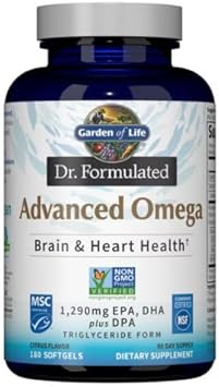 Garden of Life Dr. Formulated Advanced Omega Fish Oil delivers premium fish oil in its natural triglyceride form for superior absorption and bioavailability. Each serving provides a potent blend of 695mg EPA, 465mg DHA, and 30mg DPA omega-3 fatty acids, specifically formulated to support heart, brain, and overall wellness. This doctor-formulated supplement features specialized pro-resolving mediators (SPM) that help maintain normal inflammatory responses in the body. Sourced from sustainable, traceable mercury-free tuna oil, our fish oil undergoes rigorous third-party testing to ensure freshness, purity, and potency. The pleasant lemon-flavored softgels eliminate fishy burps and aftertaste, making daily supplementation easy and enjoyable. As a trusted leader in organic and non-GMO supplements, Garden of Life maintains strict quality standards, earning both Non-GMO Project Verified and Marine Stewardship Council certifications for this premium omega-3 supplement,Immune Support Blend: Organic black elderberry extract combined with zinc and vitamin C from organic acerola cherry for comprehensive immune system support,Sleep Support: Features traditional bedtime herbs including organic chamomile, lemon balm, and valerian root for a restful night,Clean Formula: Sugar-free, alcohol-free liquid supplement perfect for children 4 years and older,Premium Quality: Certified USDA Organic, Non-GMO Project Verified, and made with carefully selected organic ingredients,Trusted Brand: Garden of Life's commitment to quality ensures every bottle meets rigorous standards for purity and potency
