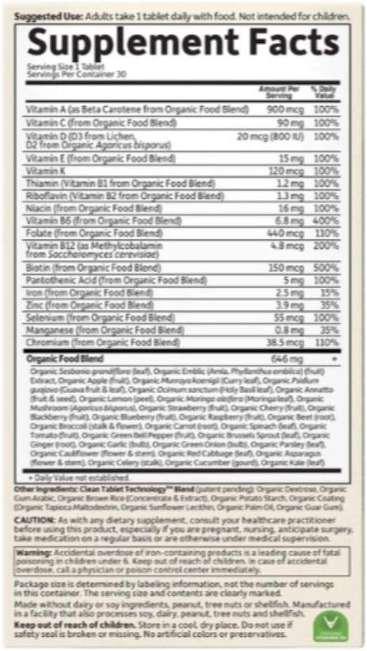 Garden of Life mykind Organics Women Once Daily Whole Food 60 Vegan Tablets Health Energy Beauty Multivitamin