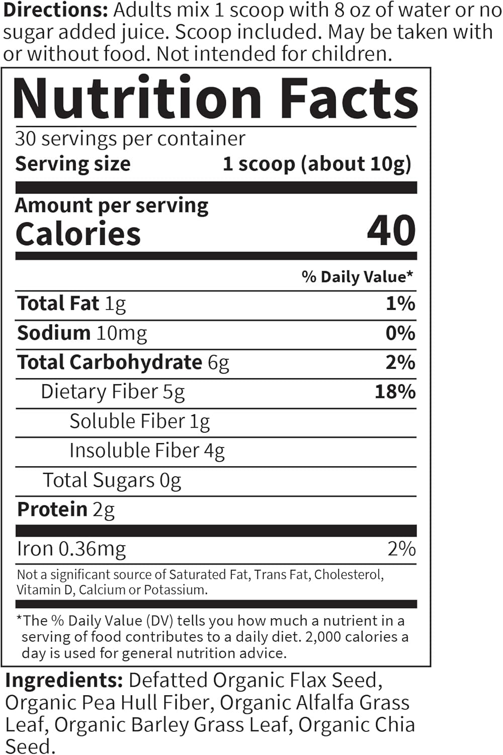 Garden Of Life Organic Unflavored Fiber Powder Detox Blend With Chia, Alfalfa & Barley For Herbal Cleanse, Gut Health Support - Detoxifiber - Non-Gmo, Gluten-Free, Psyllium Free, Vegan, 30 Servings