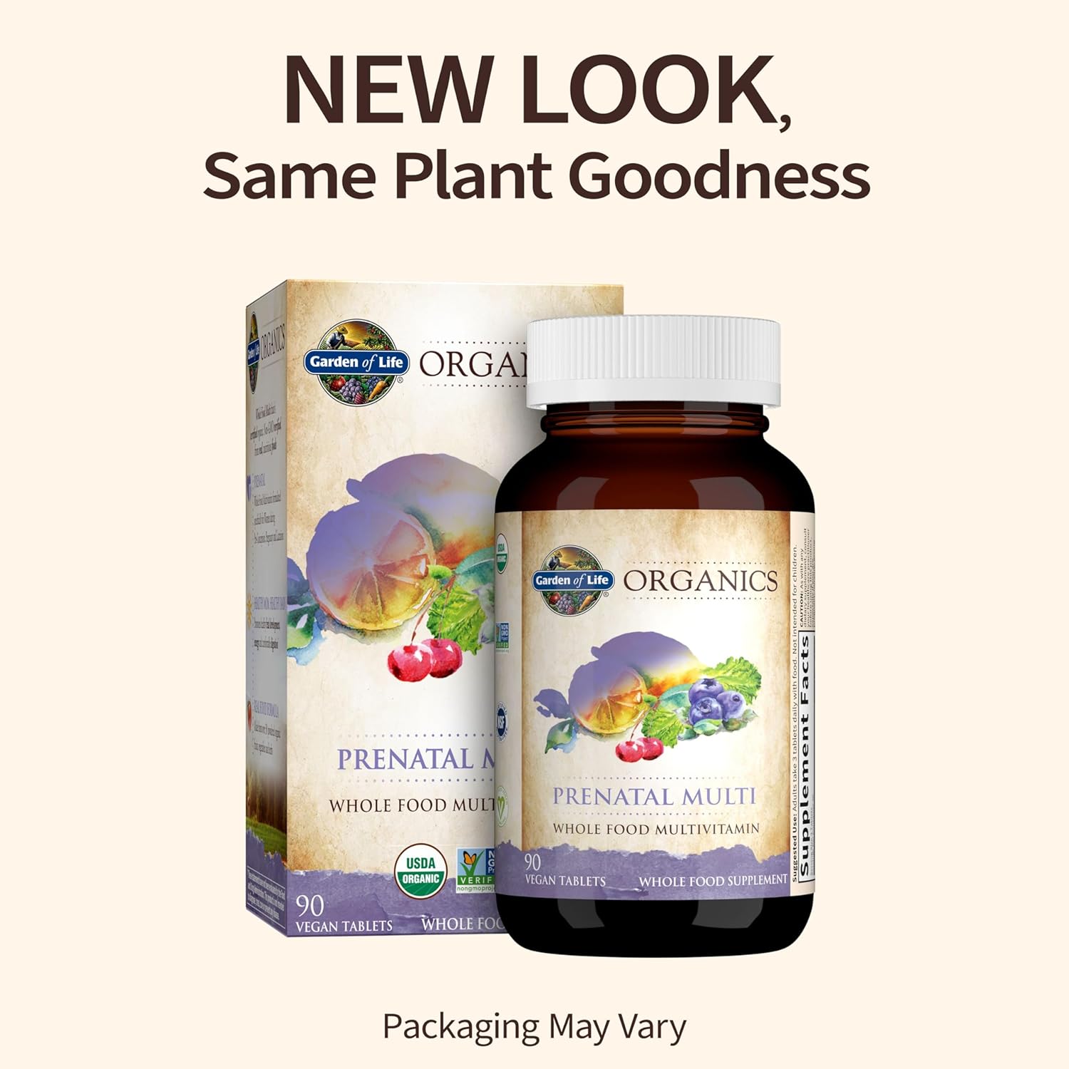 Garden Of Life Organics Womens Prenatal Multivitamin With Vitamin D3, B6, B12, C & Iron, Folate For Energy & Healthy Fetal Development Organic, Non-Gmo, Gluten-Free, Vegan, 30 Day Supply