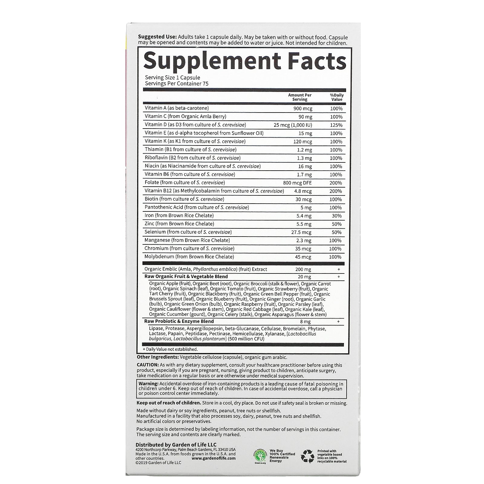 Garden Of Life Vitamin Code Raw One Once Daily Multivitamin Capsules, Fruits, Veggies, Probiotics For Womens Health, Vegetarian, Gluten Free