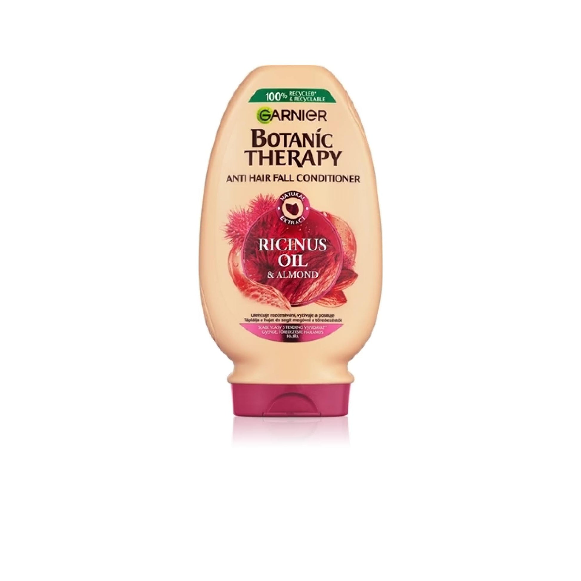 Hair Type:All Hair Types&Effects:Growth Stimulation, Regeneration&Scalp Skin Type:All Scalp Types&Hair Problem:Damaged Hair, Thinning Hair And Hair Loss Hair Loss And Thinning Hair Can Be An Unpleasant Experience. Garnier Botanic Therapy Ricinus Oil Conditioner Visibly Nourishes Your Hair And Gives It Renewed Vitality Without Weighing It Down. The Extract Of Ricin Oil Thickens The Hair And Additionally Strengthens Its Structure, While Almond Oil Moisturizes The Hair And Prevents It From Breaking. Empower Your Hair With New Strength And Energy! Characteristics: Prevents Hair Loss Smoothes The Hair Fibers Strengths Hair From Roots To Ends Facilitating Combing Suitable For Thinning Hair Ingredients: Ricinus Oil – Provides Nutrition For The Hair Fibers, Smoothes The Hair Almond Oil – Hydrates, Prevents Breakage Made Of 100% Recycled Material 100% Recyclable Packaging Made With 46% Renewable Energy How To Apply: Apply Botanic Therapy Ricinus Oil Anti-Hair Fall Conditioner To Wet Hair, Massage Gently, And Rinse. Avoid Contact With Eyes Other Information:Manufacturer/Importer: Garnier 14, Rue Royale 75008 Paris France Garnier@It.Oaccare.Com About The Brand:Class Garnier Garnier Products Have Been Having An Impact On The Lives Of Men And Women Around The World For More Than A Century. Founded In France, It Gradually Became One Of The Best-Known Cosmetic Brands. The Story Began In 1904, When Alfred Amour Garnier Developed The First Plant Toner For Hair Beauty, Which Soon Became A Bestseller. In 1960, The First Garnier Hair Colour Was Created For Home Use, Leading Women To Start Viewing Their Hair As A Fashion Accessory. Other Products That Gained Instant Popularity Include Garnier Micellar Water And Garnier Pure Active Cleansing Gel. The Garnier Brand Has Always Listened To Its Customers And Reflected Their Needs In Its Skin Care And Hair Care Ranges. It Creates Products That Are Truly Effective And Readily Available And Make Everyday Rituals In Beauty Care Simpler. It Is Because Of This That Garnier Has Become So Successful And Can Now Be Found In Over 120 Countries All Over The World Ingredients:Ingredients Garnier Botanic Therapy Ricinus Oil Complete Ingredients List Aqua / Water, Cetearyl Alcohol, Behentrimonium Chloride, Cetyl Esters, Ci 19140 / Yellow 5, Ci 14700 / Red 4, Ricinus Communis Oil / Castor Seed Oil, Acer Saccharum Extract / Sugar Maple Extract, Trideceth-6, Chlorhexidine Digluconate, Pentaerythrityl Tetra-Di-T-Butyl Hydroxyhydrocinnamate, Benzyl Salicylate, Linalool, Benzyl Alcohol, Amodimethicone, Isopropyl Alcohol, Caramel, Citric Acid, Cetrimonium Chloride, Prunus Amygdalus Dulcis Oil/Sweet Almond Oil, Hexyl Cinnamal, Parfum / Fragrance. The Manufacturer Is Responsible For The Ingredients Of The Product. We Recommend Checking The List Of Product Ingredients Directly On Its Packaging Due To Potential Changes