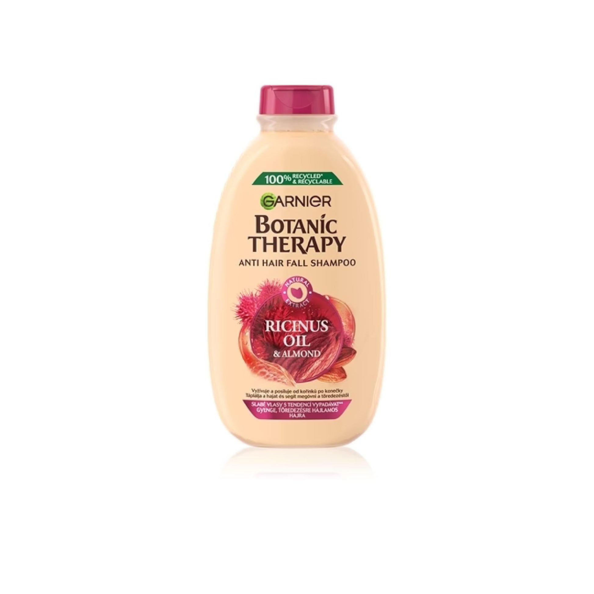 Hair Type:All Hair Types&Effects:Growth Stimulation&Scalp Skin Type:All Scalp Types&Hair Problem:Damaged Hair, Thinning Hair And Hair Loss The Garnier Botanic Therapy Fortifying Shampoo Rejuvenates The Natural Beauty Of Your Hair As You Wash It And Restores Its Firmness Effectively. The Hair Is Stronger To The Touch And Looks Healthier And More Beautiful Day After Day. Characteristics: Restores The Strength Of The Hair Fibre Strengthens Hair From The Roots Prevents Hair Breakages Nourishes The Hair Without Weighing It Down Ingredients: Castor Oil– Penetrates Deep Into The Hair Fibre And Strengthens Hair From The Inside Almond Oil – Nourishes Hair Paraben-Free Other Information:Manufacturer/Importer: Garnier 14, Rue Royale 75008 Paris France Garnier@It.Oaccare.Com About The Brand:Class Garnier Garnier Products Have Been Having An Impact On The Lives Of Men And Women Around The World For More Than A Century. Founded In France, It Gradually Became One Of The Best-Known Cosmetic Brands. The Story Began In 1904, When Alfred Amour Garnier Developed The First Plant Toner For Hair Beauty, Which Soon Became A Bestseller. In 1960, The First Garnier Hair Colour Was Created For Home Use, Leading Women To Start Viewing Their Hair As A Fashion Accessory. Other Products That Gained Instant Popularity Include Garnier Micellar Water And Garnier Pure Active Cleansing Gel. The Garnier Brand Has Always Listened To Its Customers And Reflected Their Needs In Its Skin Care And Hair Care Ranges. It Creates Products That Are Truly Effective And Readily Available And Make Everyday Rituals In Beauty Care Simpler. It Is Because Of This That Garnier Has Become So Successful And Can Now Be Found In Over 120 Countries All Over The World Ingredients:Ingredients Garnier Botanic Therapy Ricinus Oil Complete Ingredients List Aqua / Water, Sodium Laureth Sulfate, Cocamidopropyl Betaine, Sodium Lauryl Sulfate, Glycerin, Glycol Distearate, Amodimethicone, Sodium Chloride, Ci 19140 / Yellow 5, Ci 14700 / Red 4, Guar Hydroxypropyltrimonium Chloride, Coco-Betaine, Ricinus Communis Oil / Castor Seed Oil, Sodium Benzoate, Sodium Hydroxide, Acer Saccharum Extract / Sugar Maple Extract, Ppg-5-Ceteth-20, Trideceth-6, Salicylic Acid, Fumaric Acid, Benzyl Salicylate, Linalool, Benzyl Alcohol, Carbomer, Caramel, Cetrimonium Chloride, Citric Acid, Prunus Amygdalus Dulcis Oil / Sweet Almond Oil, Hexyl Cinnamal, Parfum / Fragrance. The Manufacturer Is Responsible For The Ingredients Of The Product. We Recommend Checking The List Of Product Ingredients Directly On Its Packaging Due To Potential Changes