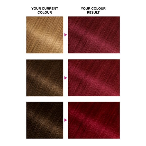 Shade: Garnier Olia 6.66 Vivid Garnet Red No Ammonia Permanent Hair Dye No Ammonia permanent at Home Hair Dye for a pleasant scent 60% oil-powered red hair dye, with natural flower oils Up to 100% grey hair coverage Maximum colour performance for intense and even colour full of beautiful reflects and long lasting shiny red hair colour Visibly improves hair quality, colour after colour, making your hair 3x shinier**. Hair is nourished and protected against dryness. ** Instrumental test vs before and after colouration. Unique sensorial application. Optimal scalp comfort with a non-drip velvety texture and a delicate floral fragrance for an easy at home hair colour dying experience. Hair Dye can only lighten your natural hair colour 1 to 2 levels β check the back of pack to see if it is the right hair colour shade for you. If you have long or thick hair, use two hair dye boxes. Top tips: Use an old towel as hair colour may stain it. Apply moisturising cream to your hairline to avoid staining