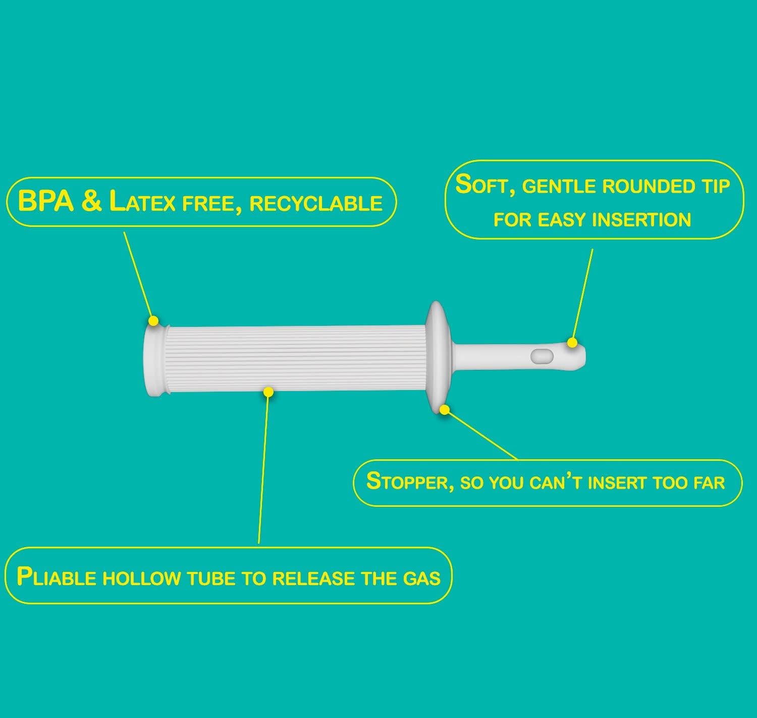 EFFECTIVE: the baby gas relief is inserted into the baby's anus to release gas immediately. Helps babies get rid of excess gas,the rounded tip will not cause any discomfort when inserted10 INVENTED BY A PEDIATRIC GASTROENTEROLOGIST: A hollow tube that safely, naturally and instantly relieves gas and calms colic10 SUPPLY Of 6 PIECES: the package includes 6 units of hollow tubes to provide instant relief for your baby10 THE PRODUCT IS 100% SAFE, we guarantee money back by refund if you are not satisfied with our product10 HOW TO USE:1. Put the baby on the mat and massage the baby's belly downwards; 2. Lubricate the baby's exhaust bar with coconut oil or petroleum jelly; 3. Raise the baby's legs, put the diaper under it, and gently insert the rod into the baby's anus; 4. Wait for the exhaust to finish and gently withdraw, and throw away the rod