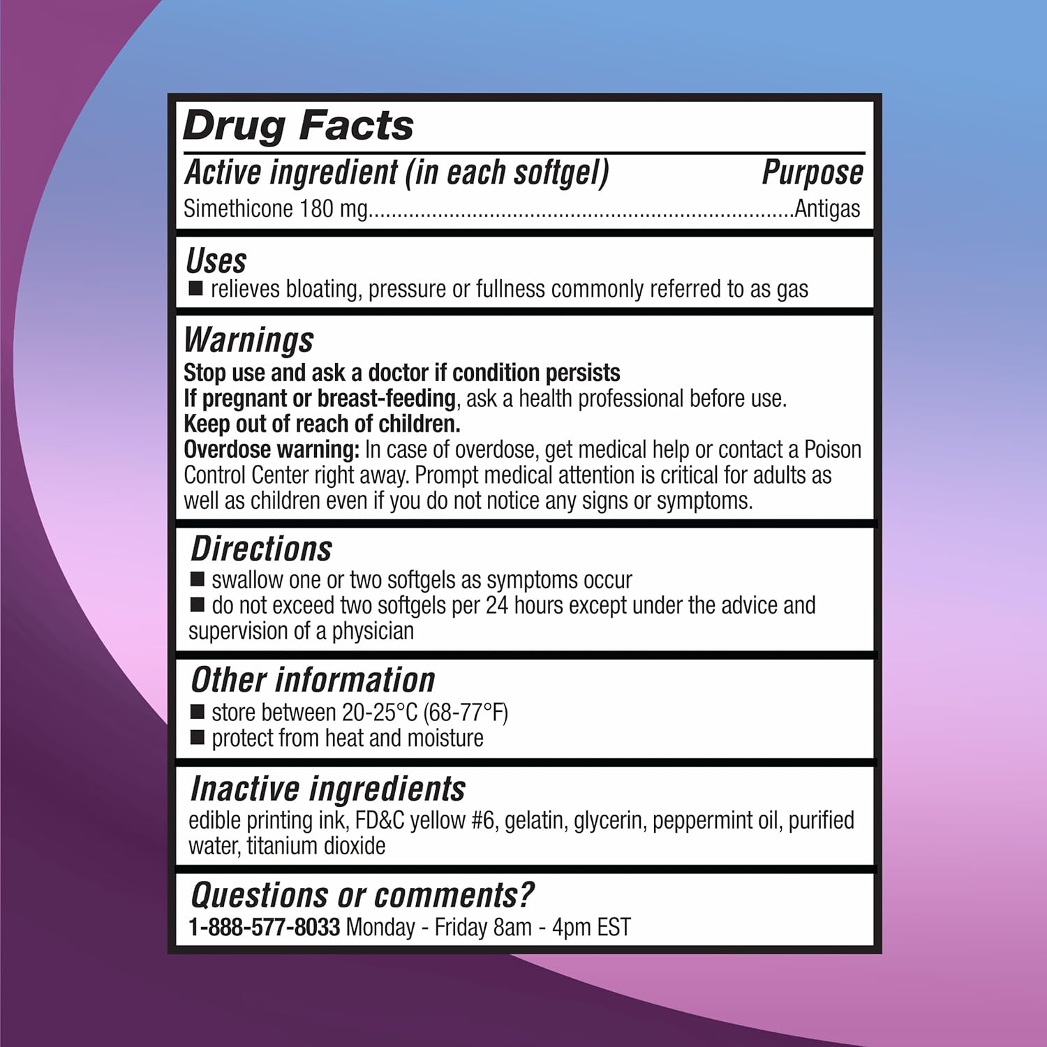Simethicone 180 Mg : Simethicone Works As An Anti-Foaming Agent To Help Break Up Gas Bubbles Which Allows Your Body To Deal With The Gas Natually