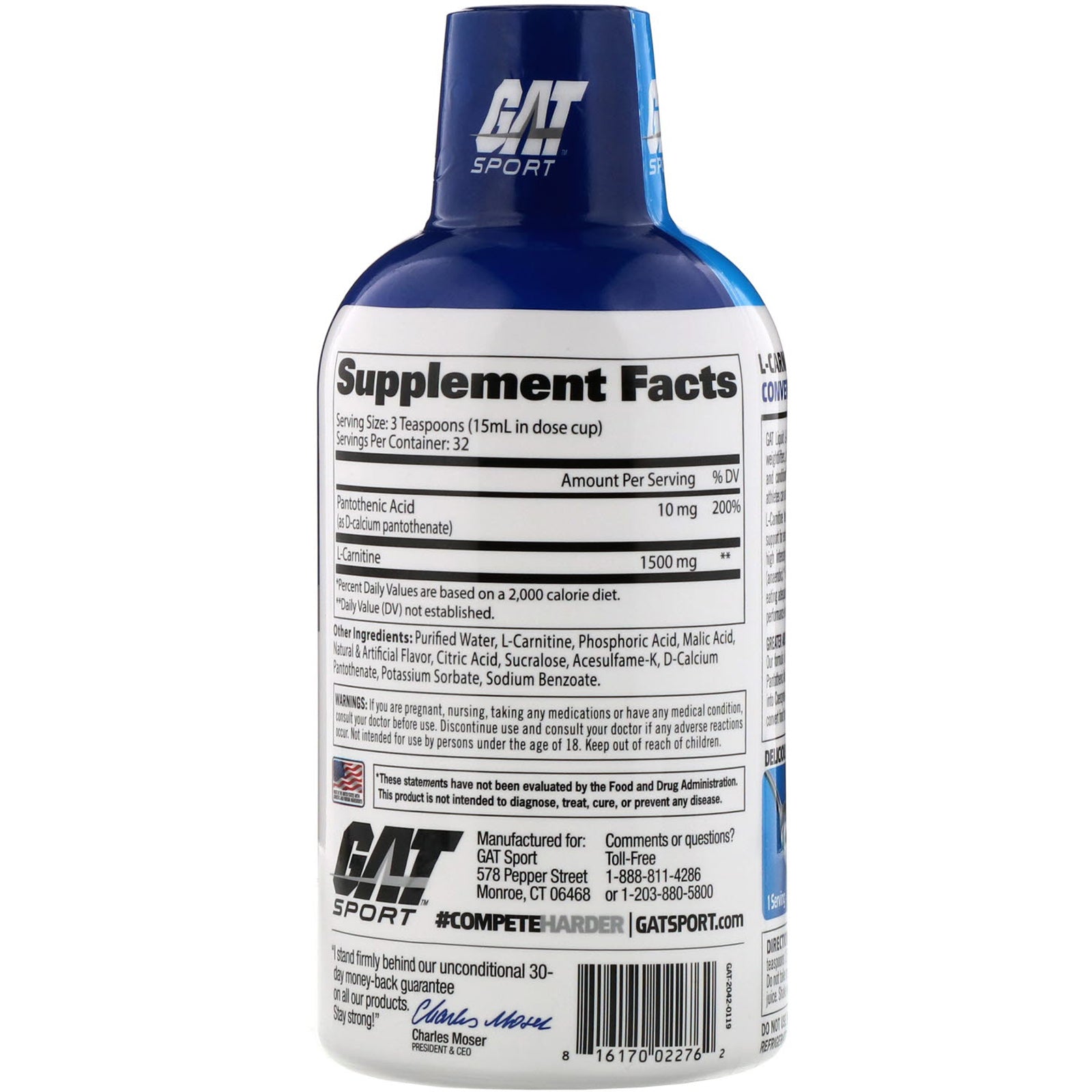 Gat, L-Carnitine, Amino Acid, 1,500 Mg, 16 Oz (473 Ml)