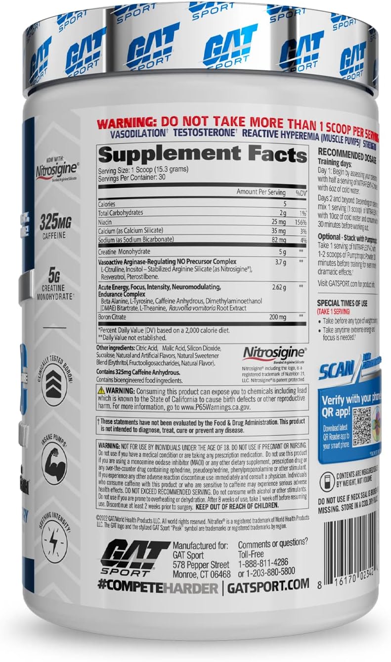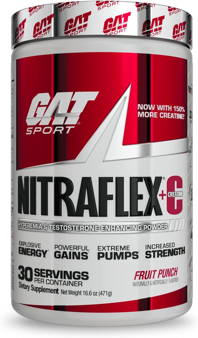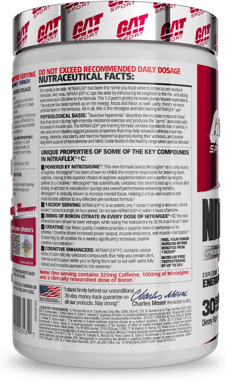 DESCRIPTION : GAT SPORT Nitraflex + C Creatine Pre Workout Supplement for Strength and Endurance, Blue Raspberry, 30 Servings