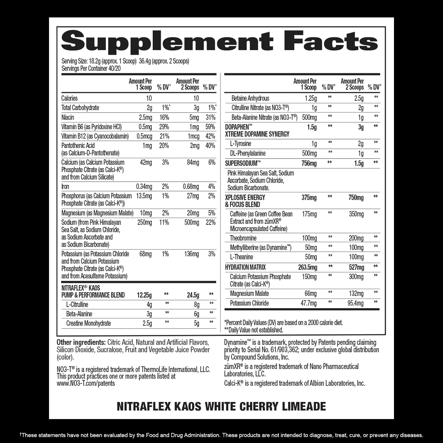 Gat Sport Nitraflex Kaos White Cherry Lime Pre-Workout Powder, Citrulline, Nitrates High-Stim Energy, Pump & Focus Booster 40 Servings