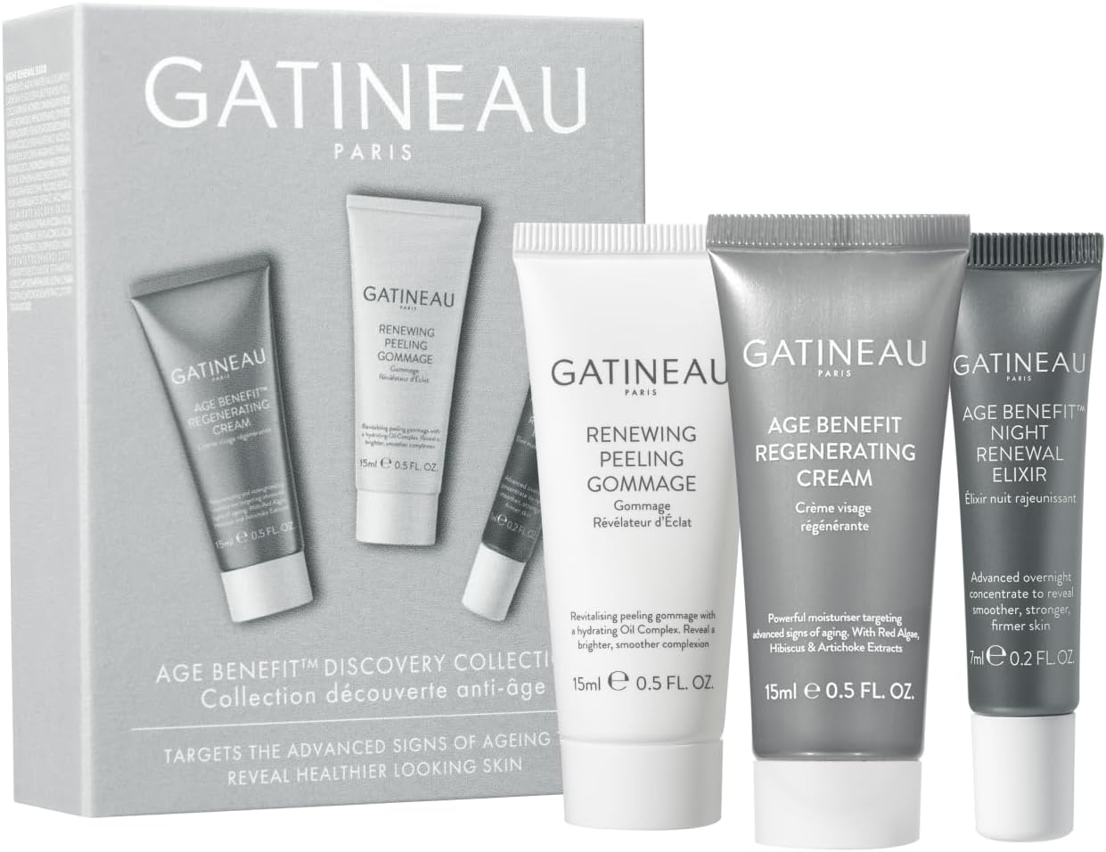 Gatineau - Age Benefit Discovery Collection - Face Cream, Peeling Exfoliator & Night Renewal Elixir, Travel Or Trial Gift Set