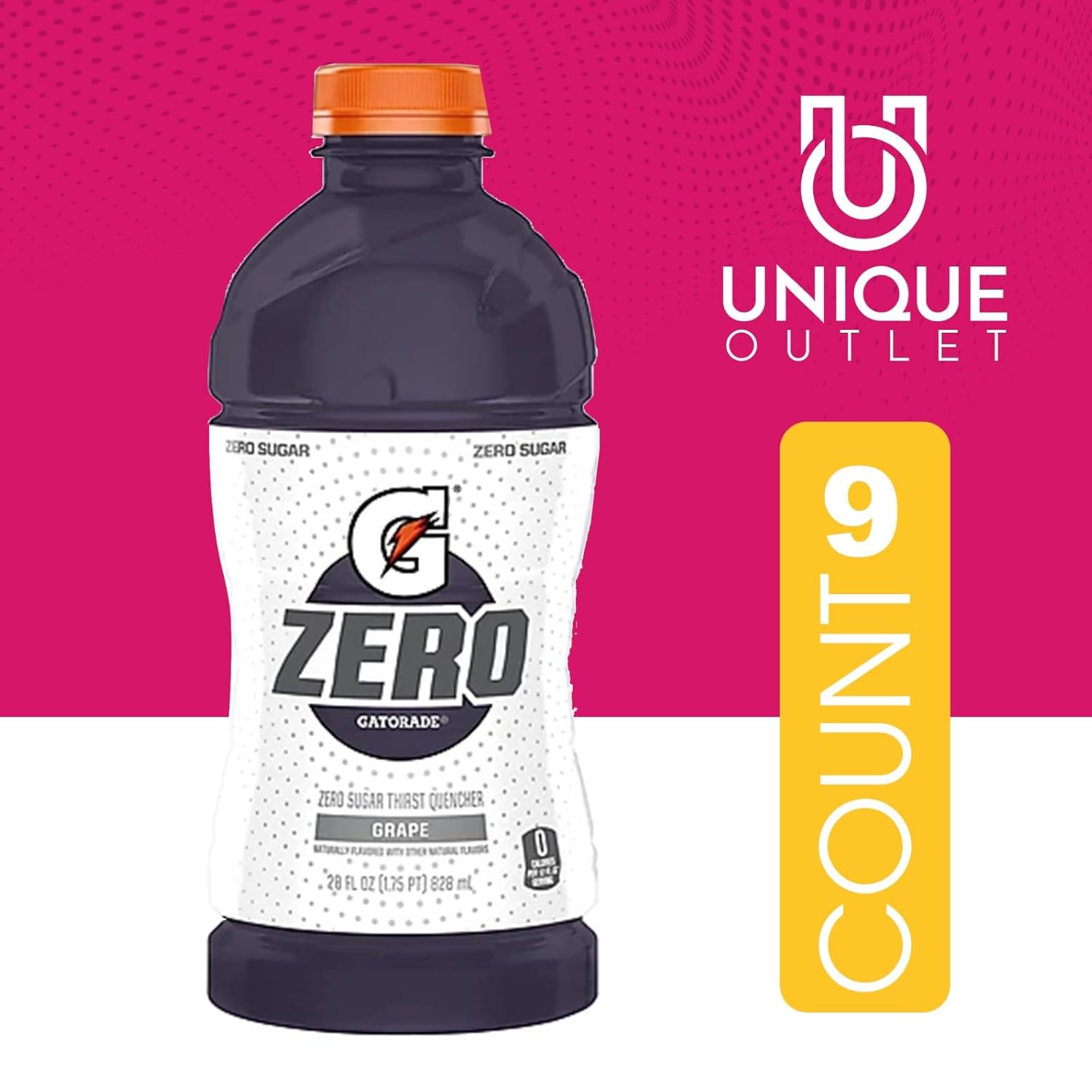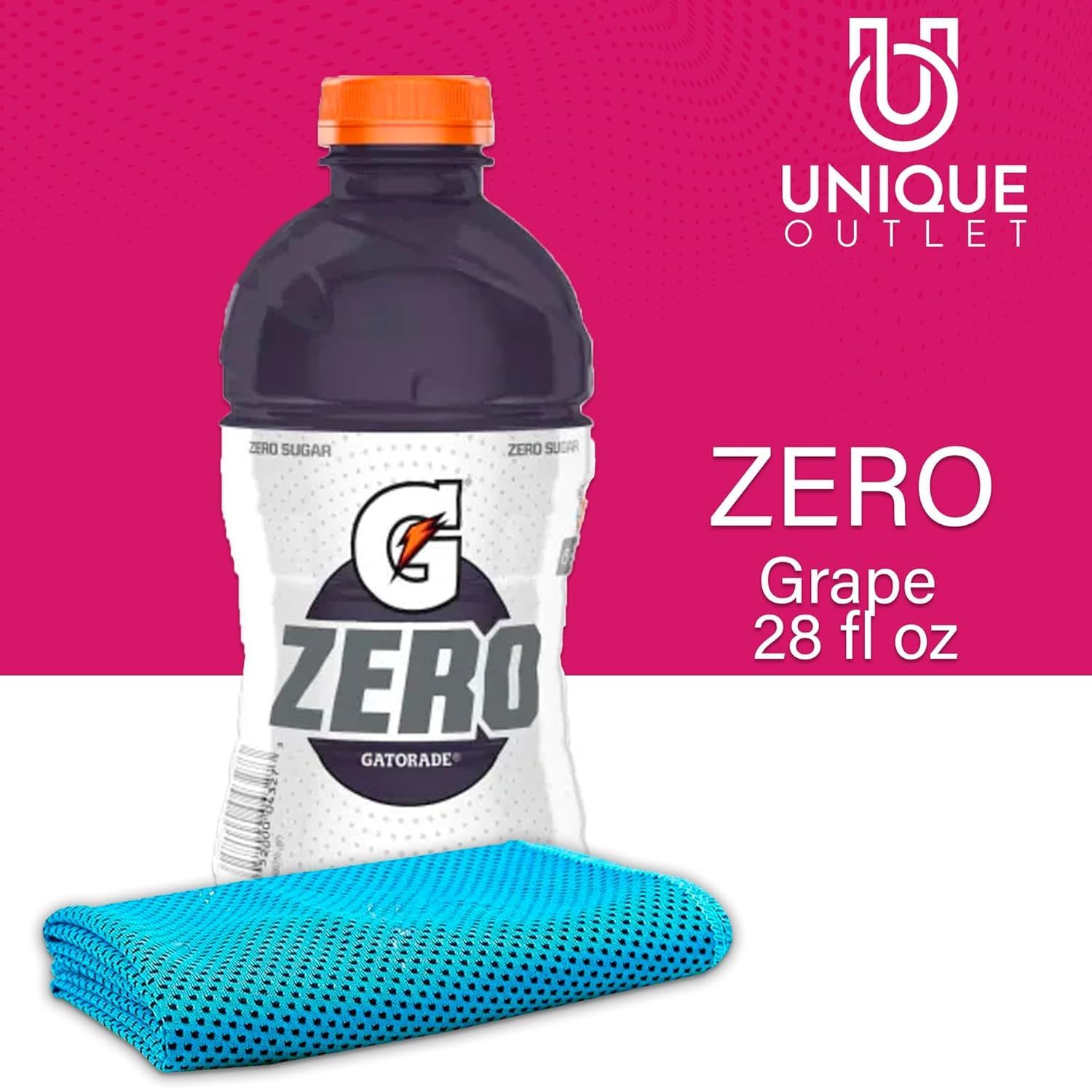 Gatorade Zero 9-Pack Of Zero Grape Thirst Quencher Electrolyte Enhanced Sports Drink 28 Fl Oz Plastic Bottle + 1 Microfiber Cooling Towel By Unique Outlet Brand