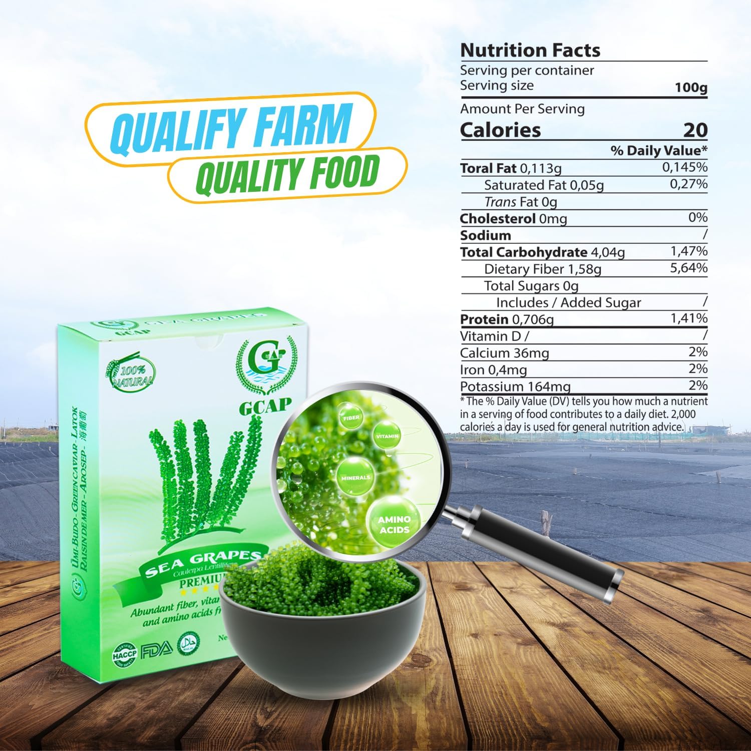 ?HIGH QUALITY, HIGH NUTRITION: Our natural sea grapes no artificial colors, organic, vegan, ensuring that you get only the most natural, healthiest seaweed possible