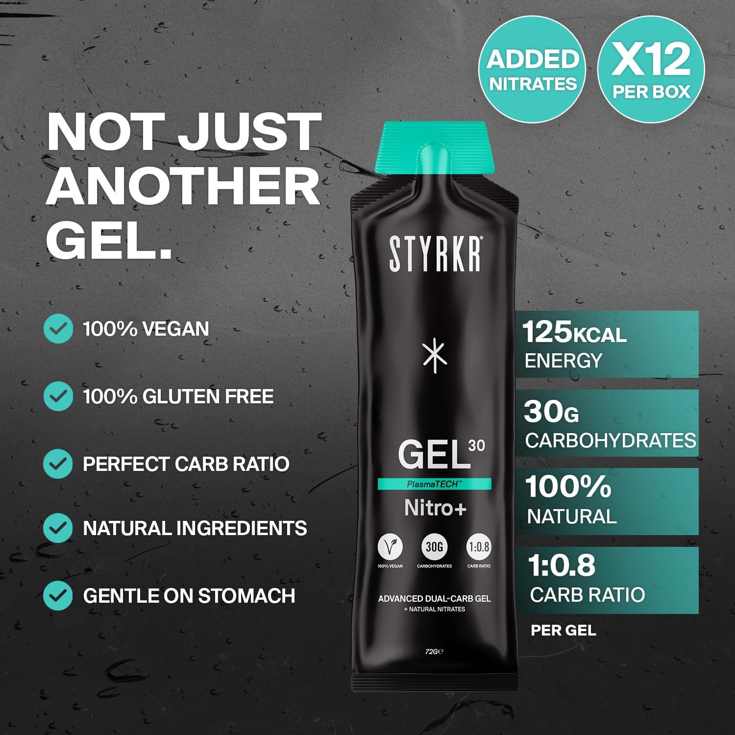Gel30 Caffeine+ Energy Gels With Caffeine By Styrkr - 30G Of Carbs - Pack Of 12 Running & Cycling Gels With 150Mg Of Caffeine - For Endurance Athletes - Dual-Carb Formula - Gel30 Caffeine+ 12X Pack