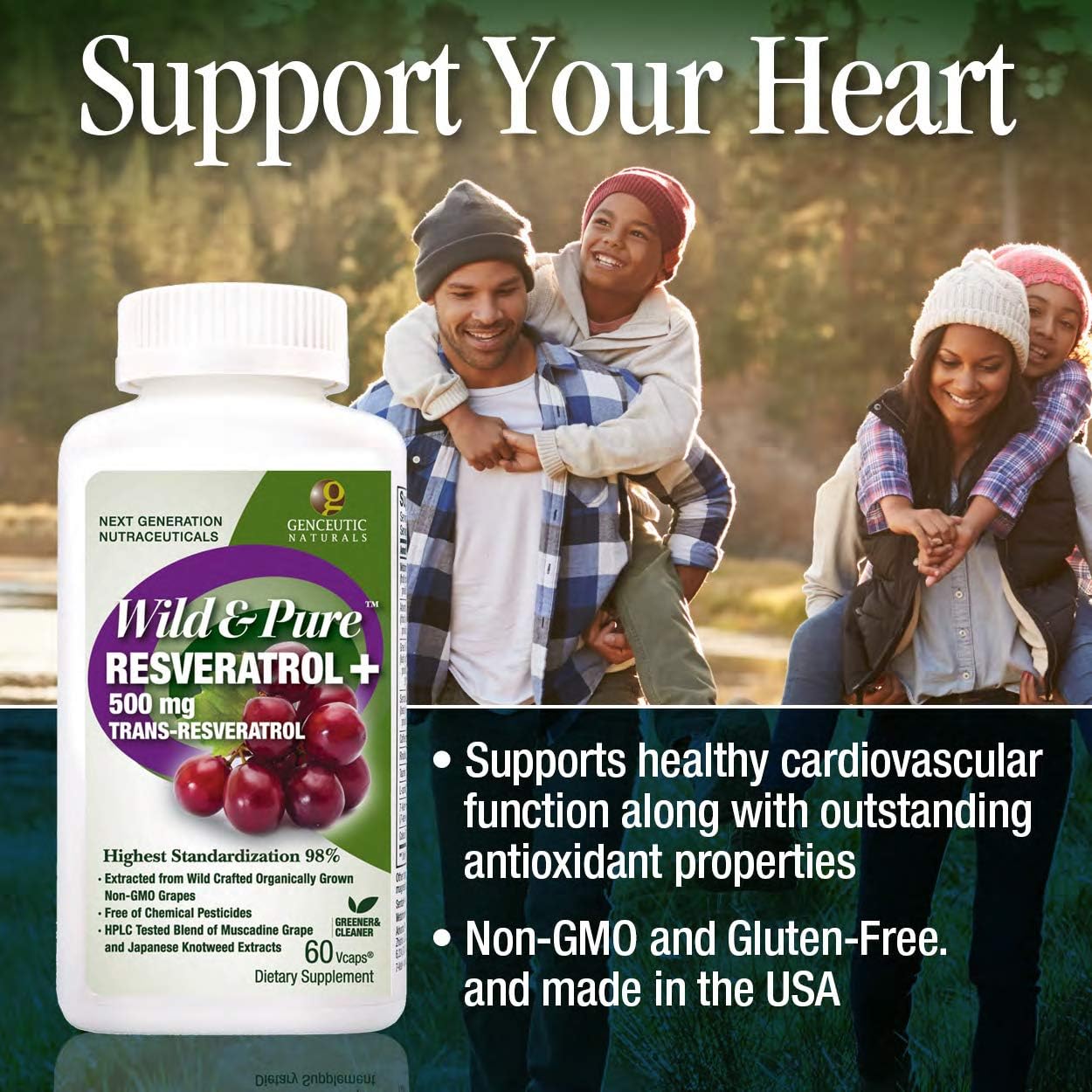 Genceutic Naturals Wild & Pure Resveratrol Vegetarian Capsules, 60-Count | Promotes Heart Health | Anti Ageing | Overall Wellness