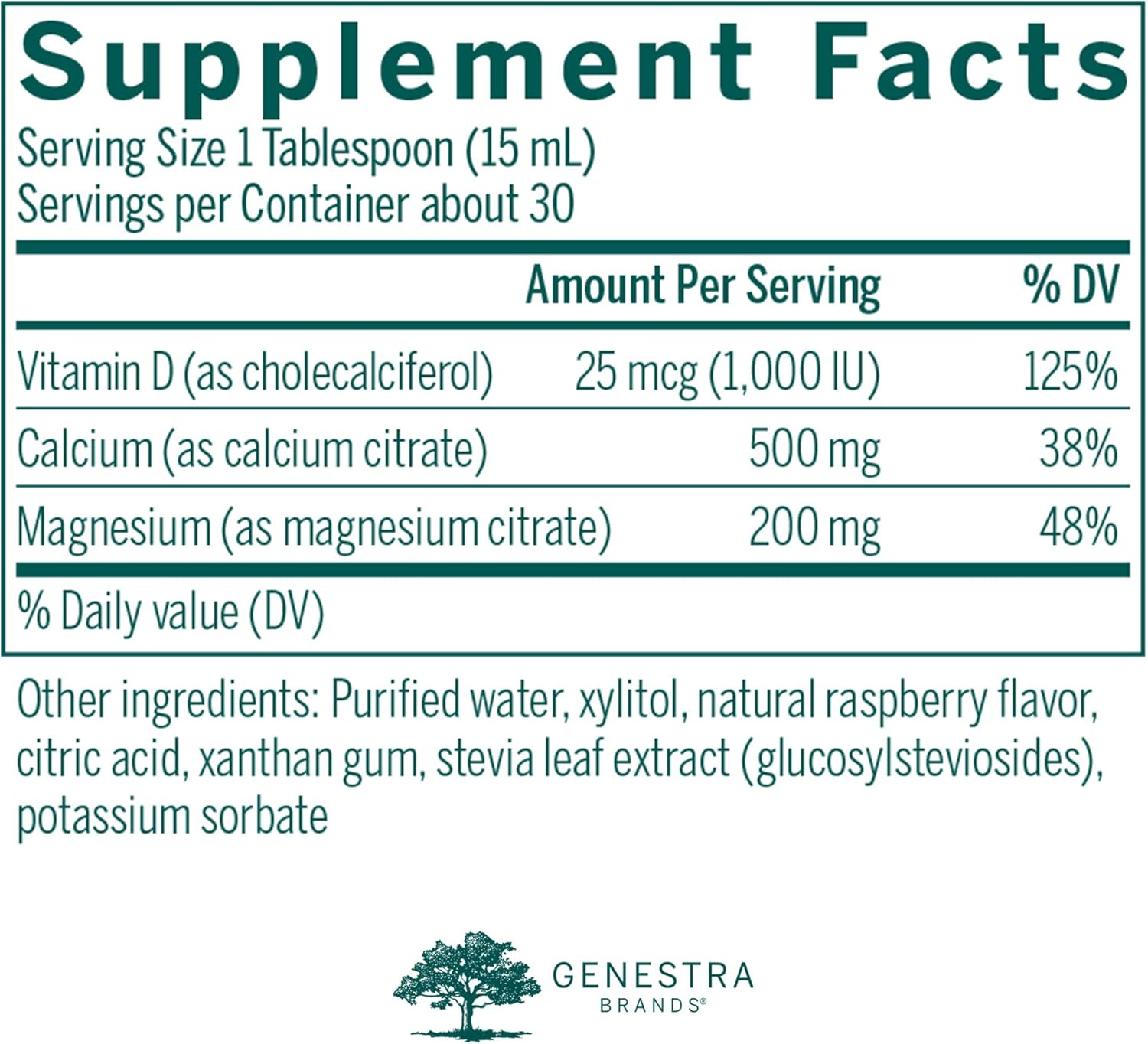 Genestra Brands Cal Mag Raspberry Liquid | Calcium And Magnesium Citrate Formula With Vitamin D | 15.2 Fl. Oz