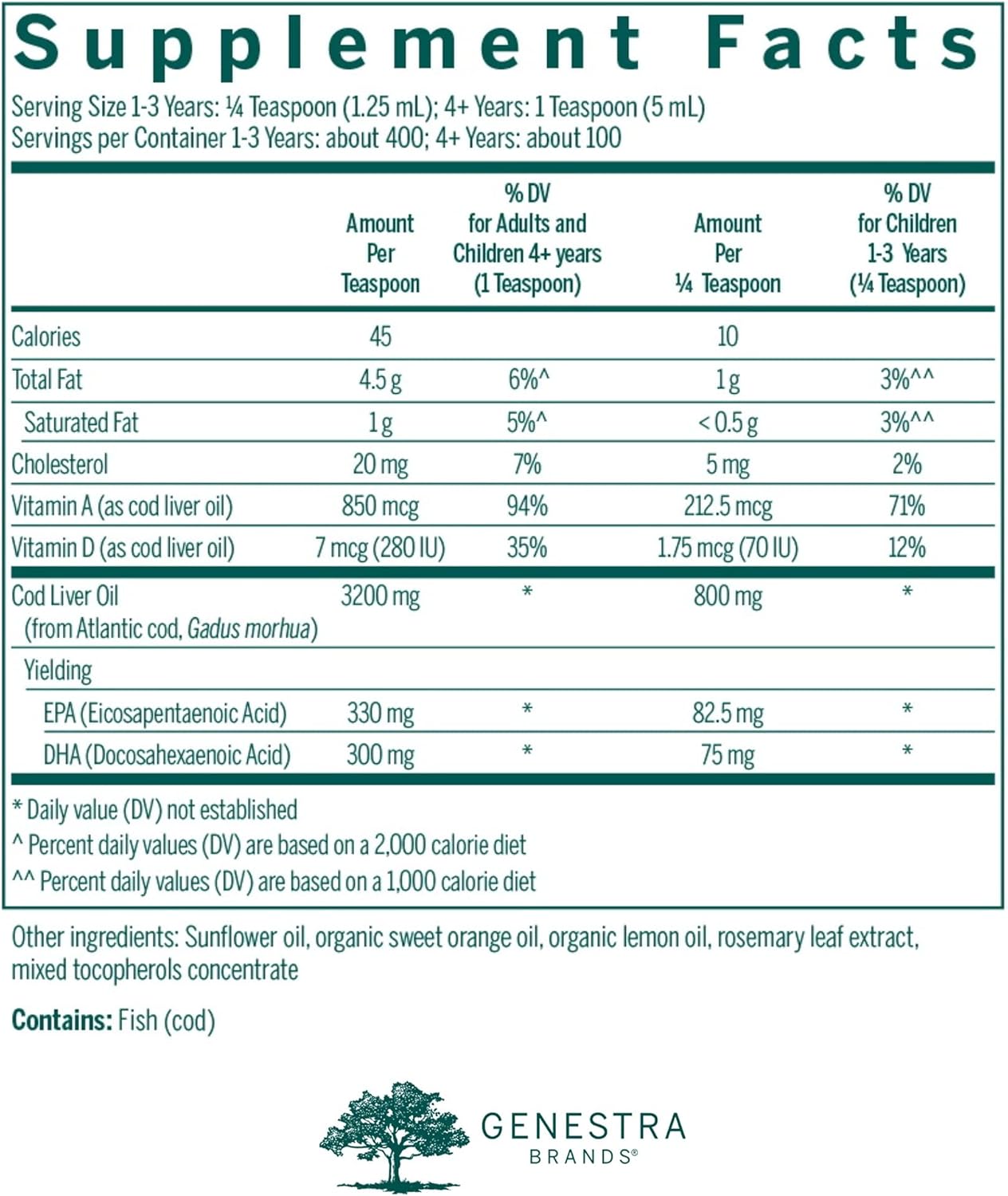 Genestra Brands Cod Liver Oil Forte | Vitamin + Essential Fatty Acid Supplement | 16.9 Fl. Oz