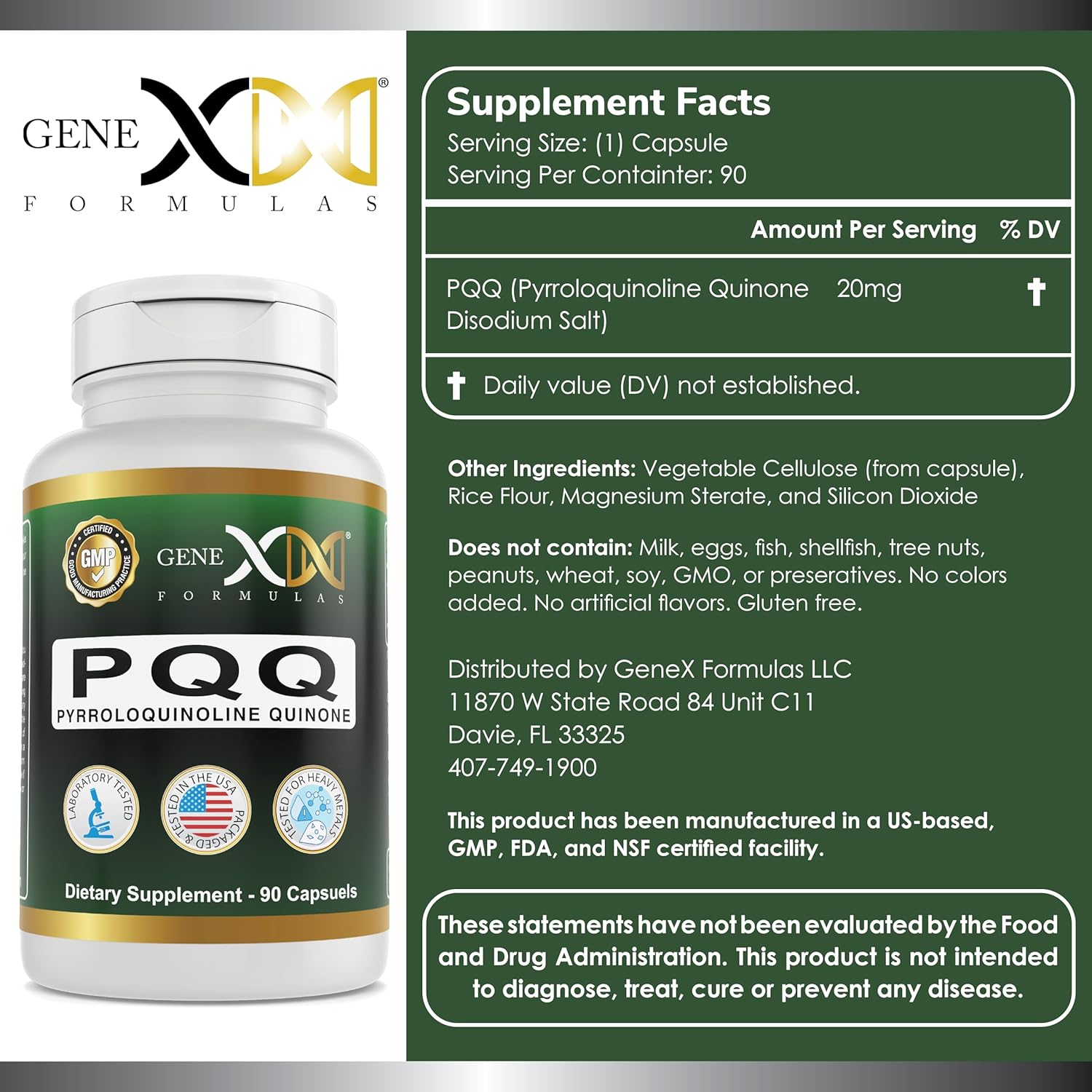 90-Day Supply - Genex Formulas Pqq Capsules Contain 20Mg Of Pqq (As Pyrroloquinoline Quinone Disodium Salt) Each. Our Capsules Are Easy To Swallow, Contain No Additives Or Fillers, And Each Bottle Contains 90 Capsules. Take 1 Capsule A Day For A 3 Month Supply In Every Bottle!