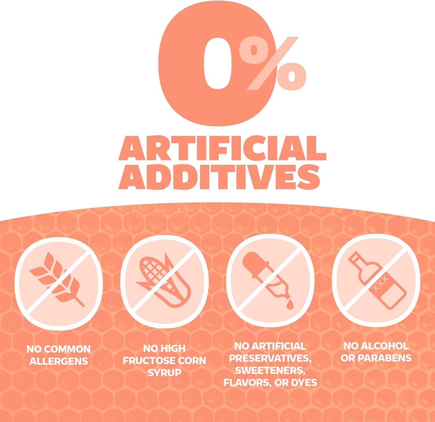 [Ingredients Kids Deserve]: Our honey cough syrup has no artificial sweeteners or artificial preservatives, no dyes, no parabens, drug-free, alcohol-free and no common allergens. It is certified organic, gluten-free, and non-GMO. Feel good about the ingredients you give to your kids