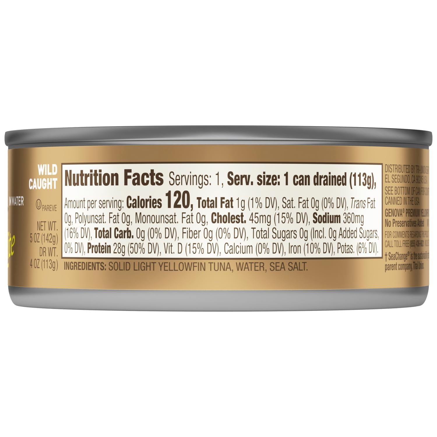 Genova Premium Yellowfin Tuna In Water With Sea Salt, Wild Caught, Solid Light, 5 Oz. Can (Pack Of 12)