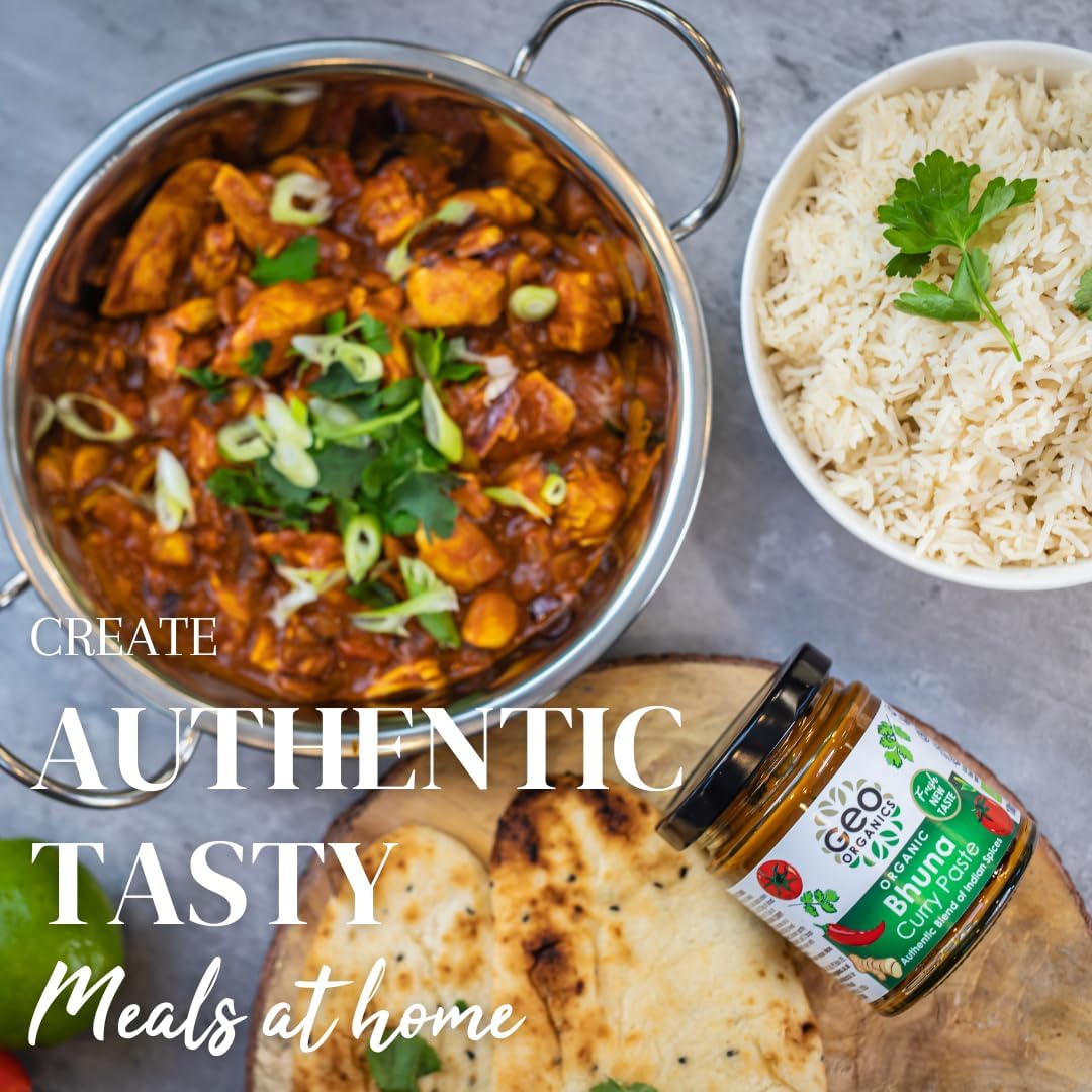 Geo Organics Bhuna Curry Paste 180G (Pack Of 1) Serves 4 | Organic Curry Paste | Certified Organic & Vegan-Friendly Indian Curry Paste | Authentic Restaurant Recipe Base Vegan Food