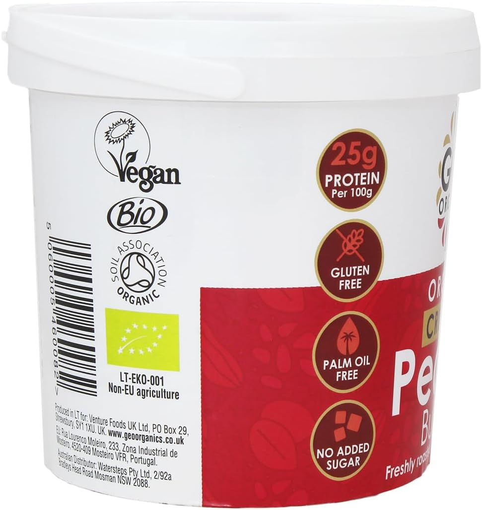 Geo Organics Smooth Peanut Butter 350G Jar (3Pk) -Made With 100% Organic Roasted Peanuts -Natural, No Palm Oil, No Added Sugar, No Salt, Hi-Oleic Peanuts, High Protein, Gluten Free, Vegan, Dairy Free