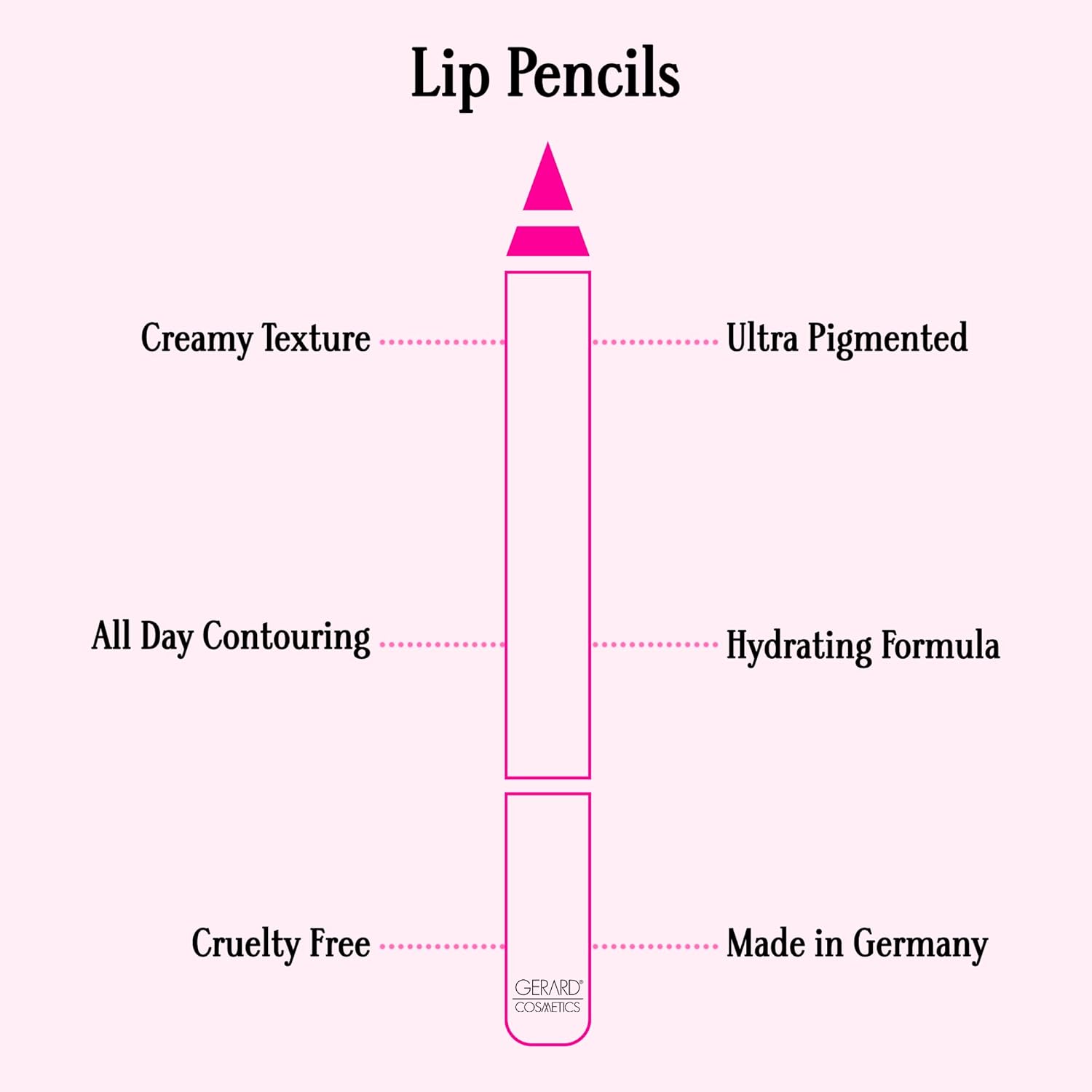 ALL DAY CONTOURING: Use Gerard Cosmetics lip pencils to contour your lips for an eye-catching smile that will last all day. Our long-lasting lip liner formula applies smoothly and stays put to enhance lip shape and prevent lipstick from feathering or smudging