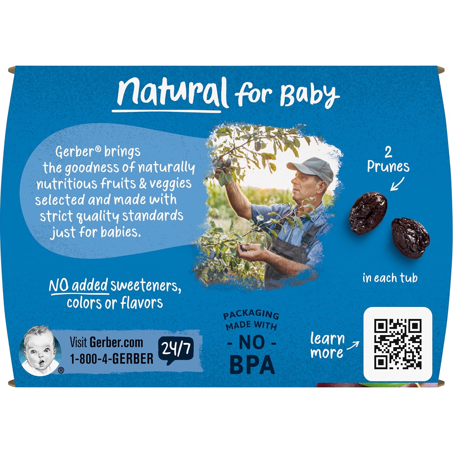 Gerber 1st Foods Baby Food, Prune Puree, Natural & Non-GMO, 2 Ounce Tubs, 2-Pack (Pack of 8)