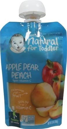 Gerber Baby Food Toddler Apple Pear Peach, 3.5 Oz Pouch
