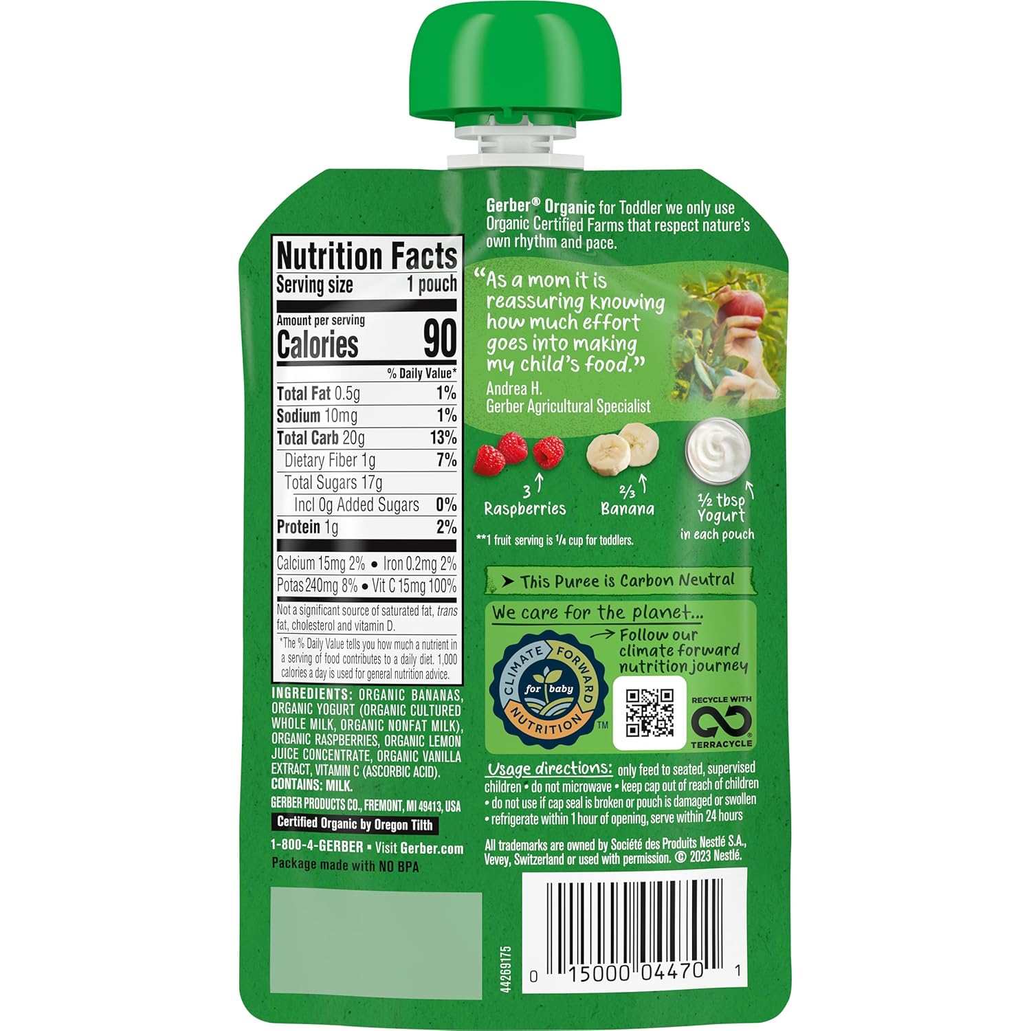 Gerber Organic Baby Food Pouches, Toddler, Banana Raspberry Yogurt Vanilla, 3.5 Ounce (Pack Of 12)