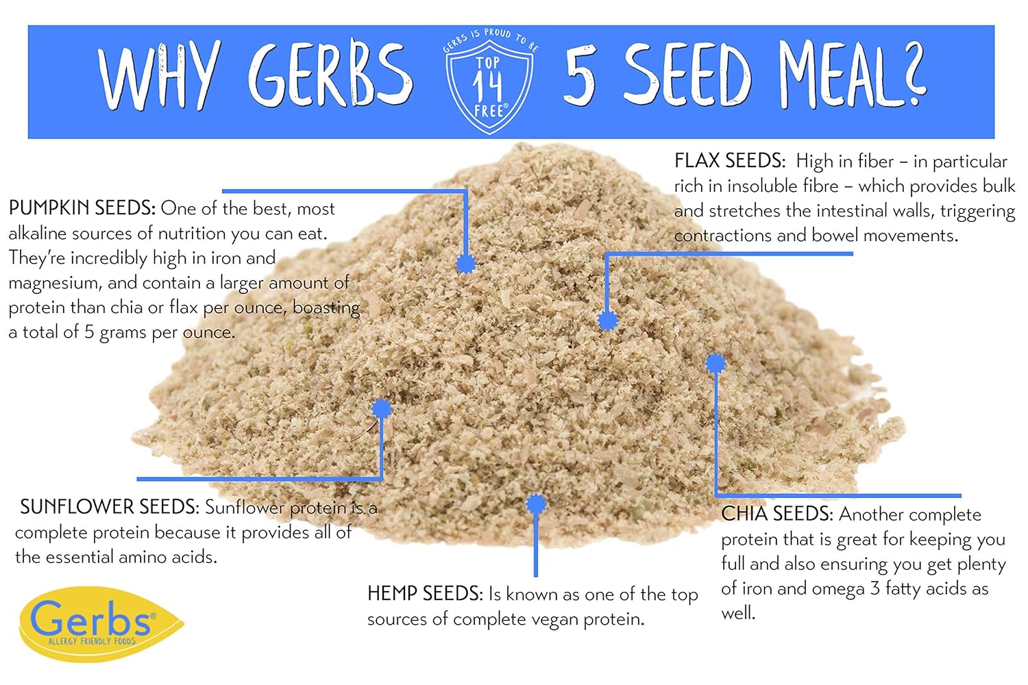 Gerbs Ground Super 5 Seed Protein Meal 1 Lb. | Freshly Harvested Season | Use In Yogurt, Smoothies, Cereal, Oatmeal, Cookies, Baking | Packed With Fiber, Protein | Heart Healthy Antioxidant Rich|Top 14 Food Allergen Free | Non-Gmo, Keto & Paleo