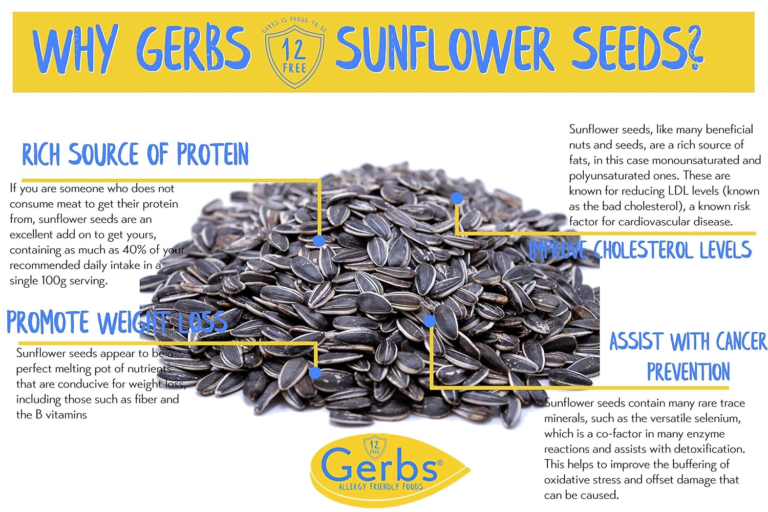Gerbs Sunflower Seeds have been manufactured and processed on our dedicated equipment for 20 years in Johnston Rhode Island. Our pumpkins seeds and entire product catalog are free from the following top food allergens: gluten, wheat, peanuts, tree nuts, nuts, legumes (beans, peas, lentils), soy, eggs, sesame seeds, dairy, milk, mustard, fish, shellfish, and crustaceans