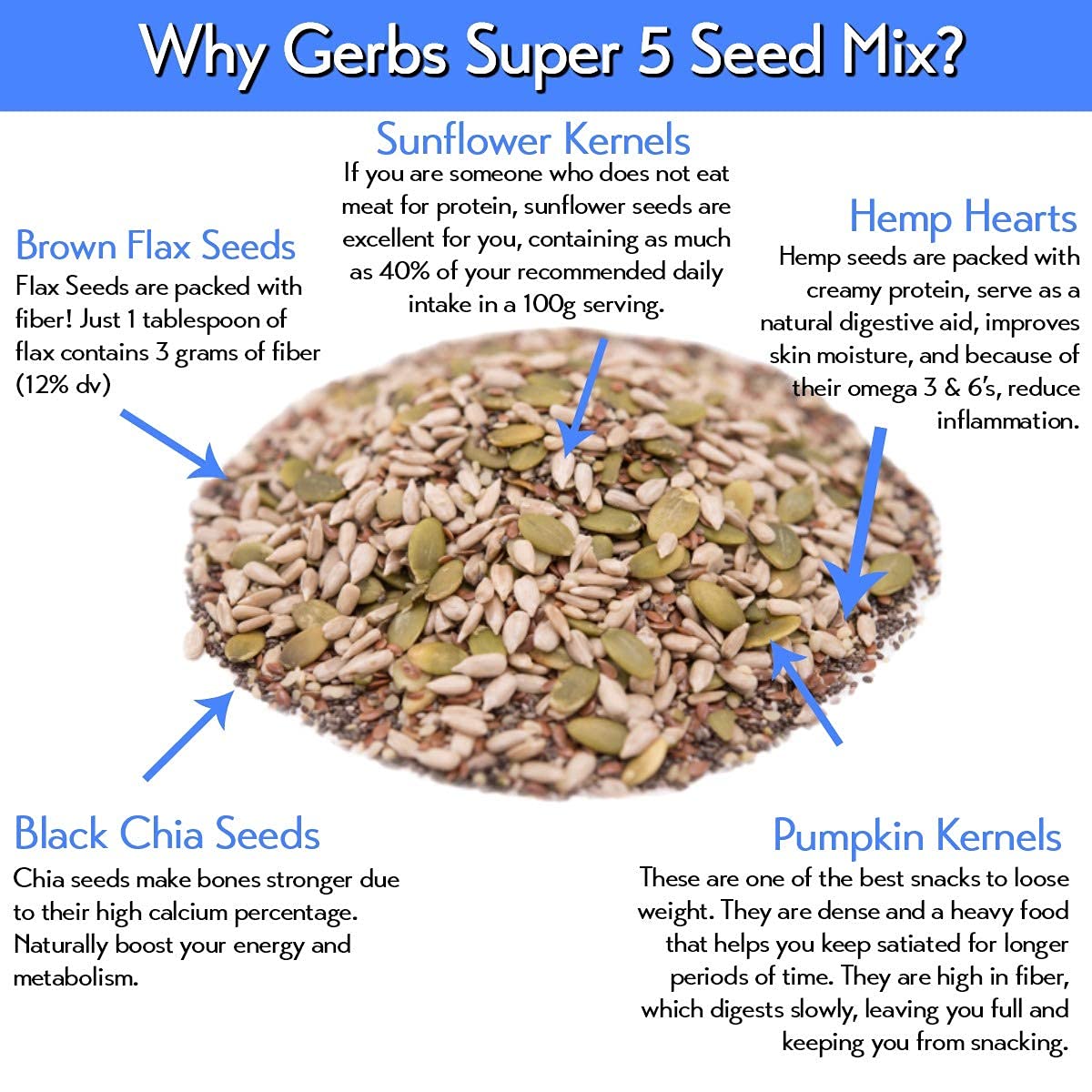 Gerbs Super 5 Seed Snack Mix 14 Oz. Premium Grade | Top 14 Food Allergy Free | Resealable Bulk Bag | Made In Usa | Raw Pumpkin Sunflower Chia Hemp Flax Seed Trail Mix | Gluten Peanut Tree Nut Free