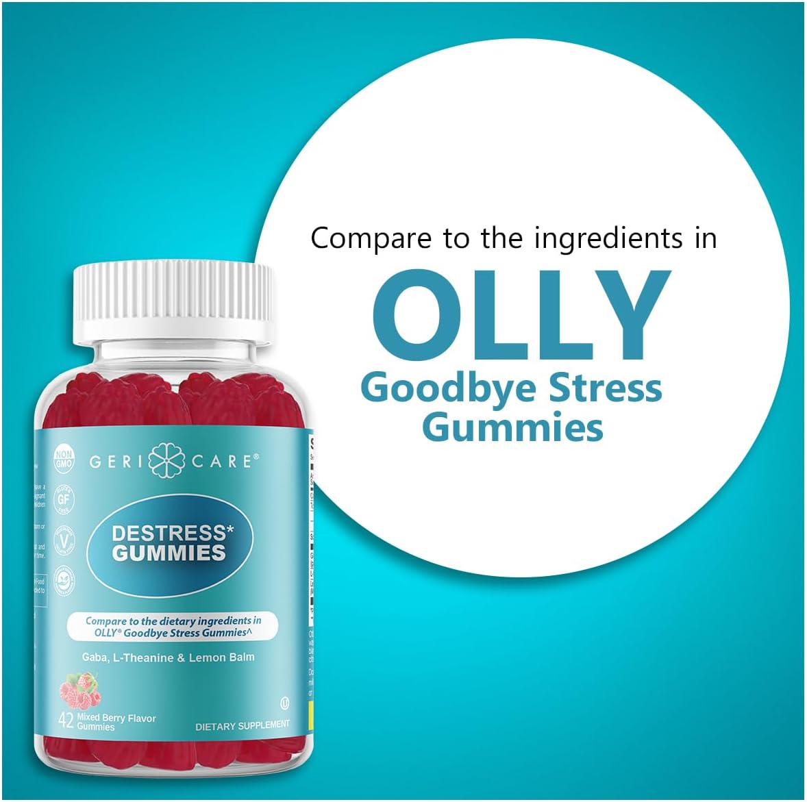 Gericare Destress Gummies With Gaba, L-Theanine & Lemon Balm – Mixed Berry Flavor – 42 Count – Supports Relaxation & Mental Clarity – Non-Gmo, Gluten-Free, Vegan