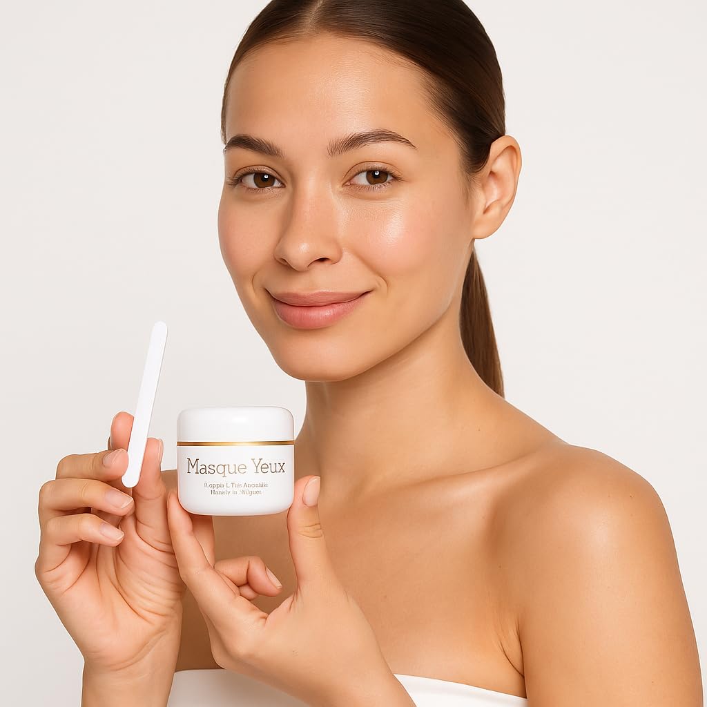 Addressing problem spots with the eyes with Masque Yeux is supported with micro-circulation from the rich botanicals and Kaolin inside