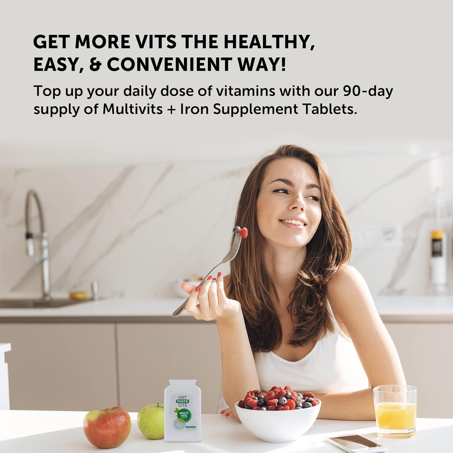 Get More Vits - Multivitamin Tablets With Iron (90 Tablets), Promotes Stronger Immune System, Healthy Bones, Teeth & Muscles, Supports Faster Metabolism, Combats Tiredness & Fatigue, Vegetarian, Vegan