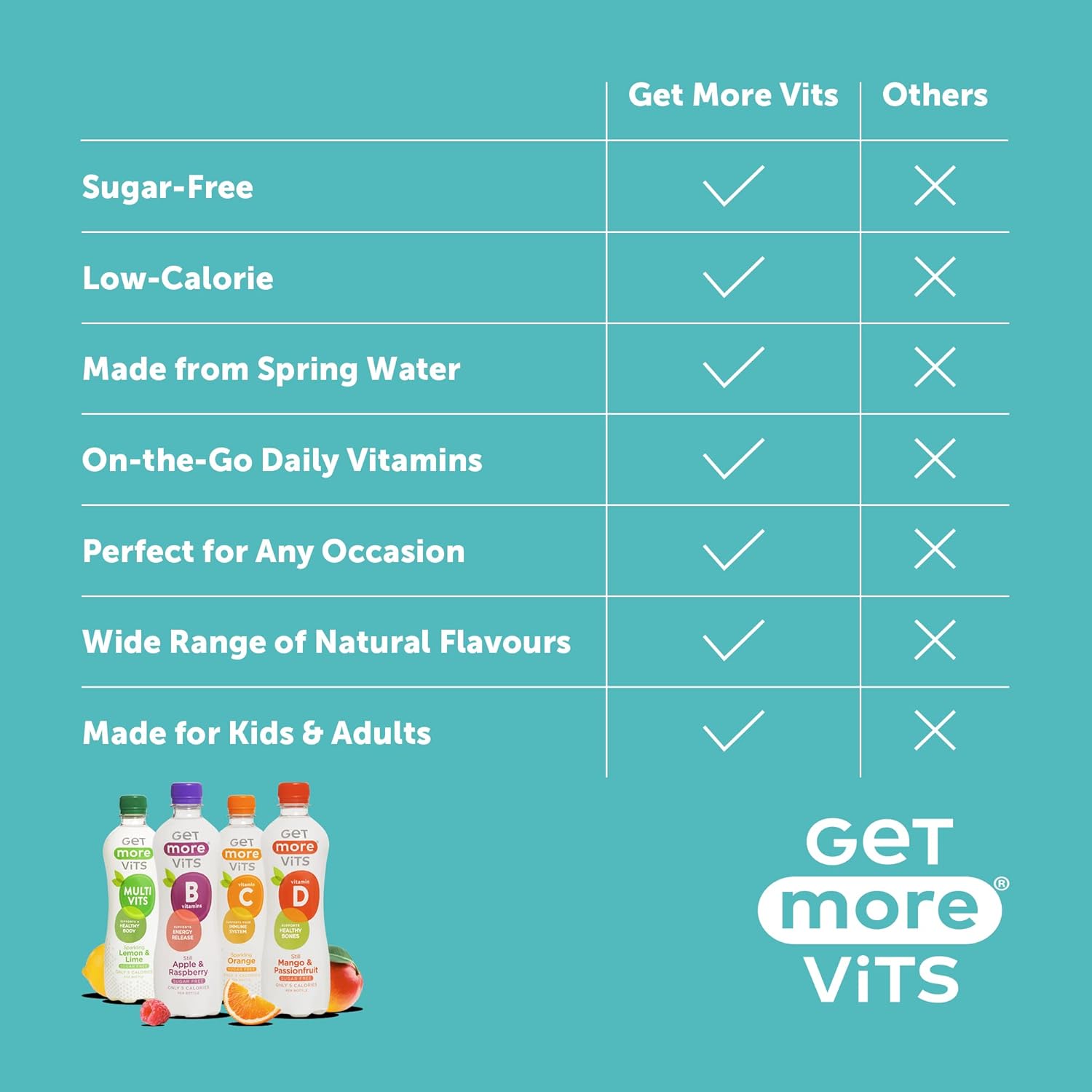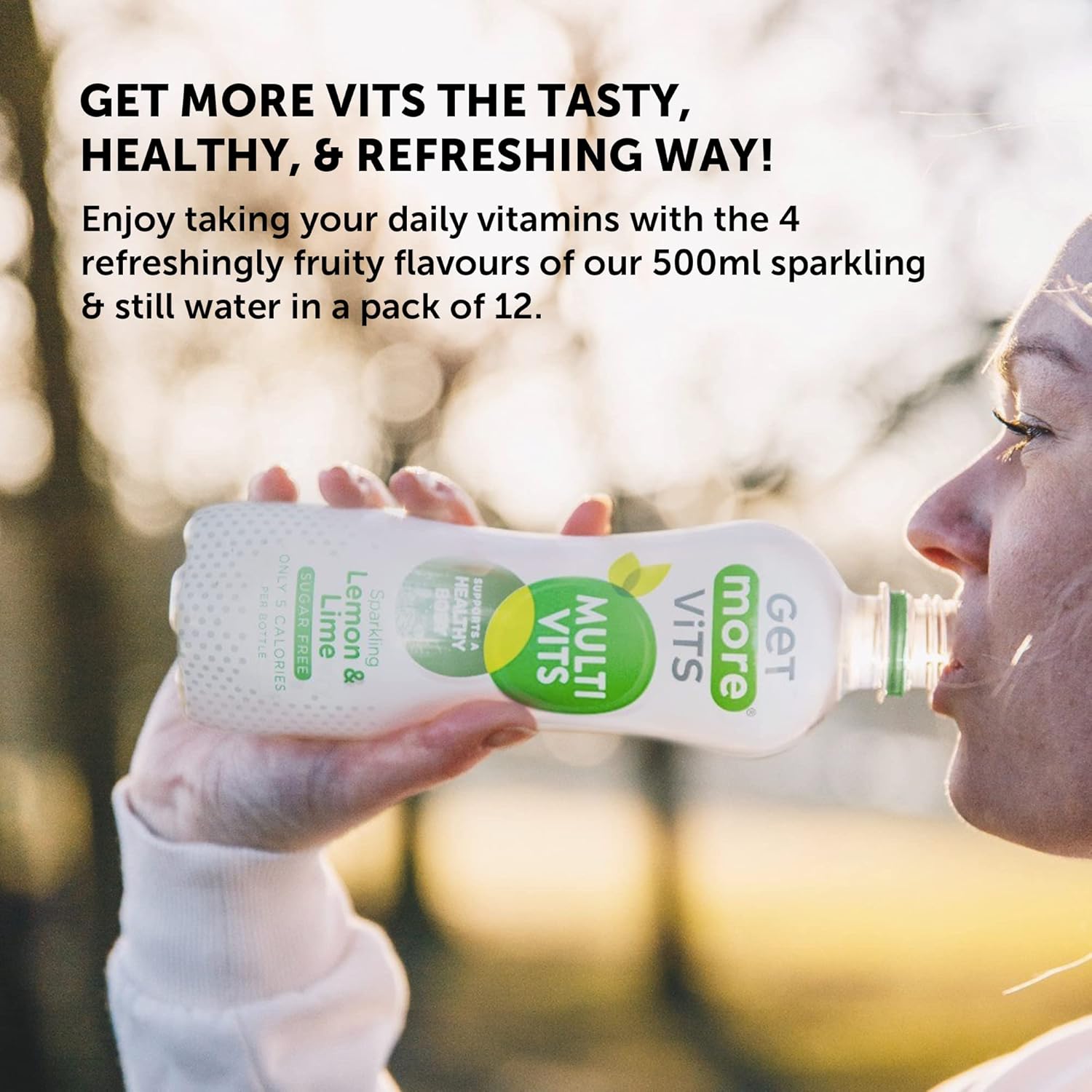 Get More Vits Sugar Free Flavoured Spring Water With Vitamins, Still & Sparkling, Mixed 4 Flavour, 500 Ml, Pack Of 12