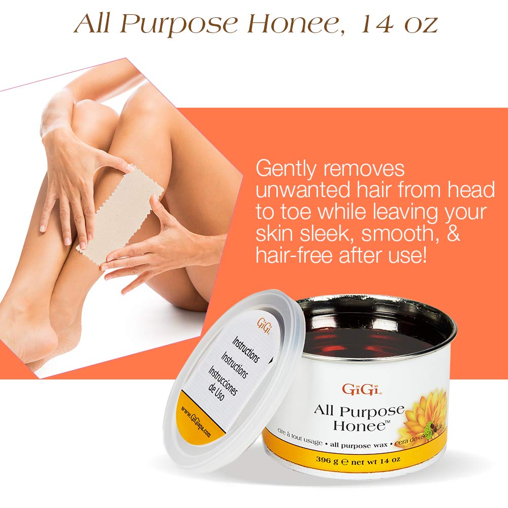 About this item ALL-IN-ONE, COMPLETE AT HOME HAIR REMOVAL KIT: This waxing set contains every wax tools you need for the most effective wax possible. It comes complete with all the professional tools such as Professional-grade Wax Warmer, All-Purpose Honee (14 oz), Pre Hon Pre-Epilation Cleanser (4.0 oz), Pre Epilation Powder (2.5 oz), Slow Grow with Argan Oil Hair Minimizer (4.0 oz), Wax Off (4.0 oz), Strips, Applicators, and Wax Collars needed for fast, efficient hair removal while being gentle on the skin. WAY TO A SMOOTH AND HAIR-FREE SKIN FOR WEEKS: Step up your hair removal game with GiGi Waxing Starter Kit! The perfect wax to remove thin and stubborn hairs, like the ones from the bikini area and the underarms. The gentle formula in this depilatory solution will help dissolve any dirt and dead skin cells, making sure you don’t get ingrown hairs or blocked pores. This removes almost all the hairs from a single pass to achieve silky smooth and hair-free skin that lasts for weeks! IDEAL FOR FACIAL AND BODY HAIR WAXING: Easy to use hair removal system that provides spa-quality finish every time. GiGi All Purpose Honee formula help protect, soothe and hydrate the skin throughout the hair removal process, leaving skin sleek, smooth and hair-free, yet gentle enough for delicate areas. Designed to remove unwanted hair on the face and body including back, arms, legs, underarms, and chest. Works like magic on every skin and hair type, reducing the need for tweezing and clean up! WAXING KIT PERFECT FOR BEGINNERS: This is the ultimate starter kit for beginners looking to learn all about waxing. This kit contains everything you need to practice and perform a complete depilatory service. The wax only adheres to the hairs and does not stick to your skin for unpainful hair removal. It’s simple to use, easy and not messy. As easy as shaving, this innovative waxing package requires no experience! SALON-QUALITY WAXING AT HOME: Why pay for a pricey salon visit when you can get ultimate waxing experience at home This kit contains every wax tool you need for the most effective wax possible and achieves the smooth, fresh from the spa feel, without the hassle and high-cost tag of salon services. It does everything you will need to have a salon-like waxing finish, plus you can tailor your usage based on your needs. Get a do-it-yourself complete line of waxing without leaving your home!  See more product details,ALL-IN-ONE, COMPLETE AT HOME HAIR REMOVAL KIT: This waxing set contains every wax tools you need for the most effective wax possible. It comes complete with all the professional tools such as Professional-grade Wax Warmer, All-Purpose Honee (14 oz), Pre Hon Pre-Epilation Cleanser (4.0 oz), Pre Epilation Powder (2.5 oz), Slow Grow with Argan Oil Hair Minimizer (4.0 oz), Wax Off (4.0 oz), Strips, Applicators, and Wax Collars needed for fast, efficient hair removal while being gentle on the skin,WAY TO A SMOOTH AND HAIR-FREE SKIN FOR WEEKS: Step up your hair removal game with GiGi Waxing Starter Kit! The perfect wax to remove thin and stubborn hairs, like the ones from the bikini area and the underarms. The gentle formula in this depilatory solution will help dissolve any dirt and dead skin cells, making sure you don’t get ingrown hairs or blocked pores. This removes almost all the hairs from a single pass to achieve silky smooth and hair-free skin that lasts for weeks!,IDEAL FOR FACIAL AND BODY HAIR WAXING: Easy to use hair removal system that provides spa-quality finish every time. GiGi All Purpose Honee formula help protect, soothe and hydrate the skin throughout the hair removal process, leaving skin sleek, smooth and hair-free, yet gentle enough for delicate areas. Designed to remove unwanted hair on the face and body including back, arms, legs, underarms, and chest. Works like magic on every skin and hair type, reducing the need for tweezing and clean up!,WAXING KIT PERFECT FOR BEGINNERS: This is the ultimate starter kit for beginners looking to learn all about waxing. This kit contains everything you need to practice and perform a complete depilatory service. The wax only adheres to the hairs and does not stick to your skin for unpainful hair removal. It’s simple to use, easy and not messy. As easy as shaving, this innovative waxing package requires no experience!,SALON-QUALITY WAXING AT HOME: Why pay for a pricey salon visit when you can get ultimate waxing experience at home This kit contains every wax tool you need for the most effective wax possible and achieves the smooth, fresh from the spa feel, without the hassle and high-cost tag of salon services. It does everything you will need to have a salon-like waxing finish, plus you can tailor your usage based on your needs. Get a do-it-yourself complete line of waxing without leaving your home!