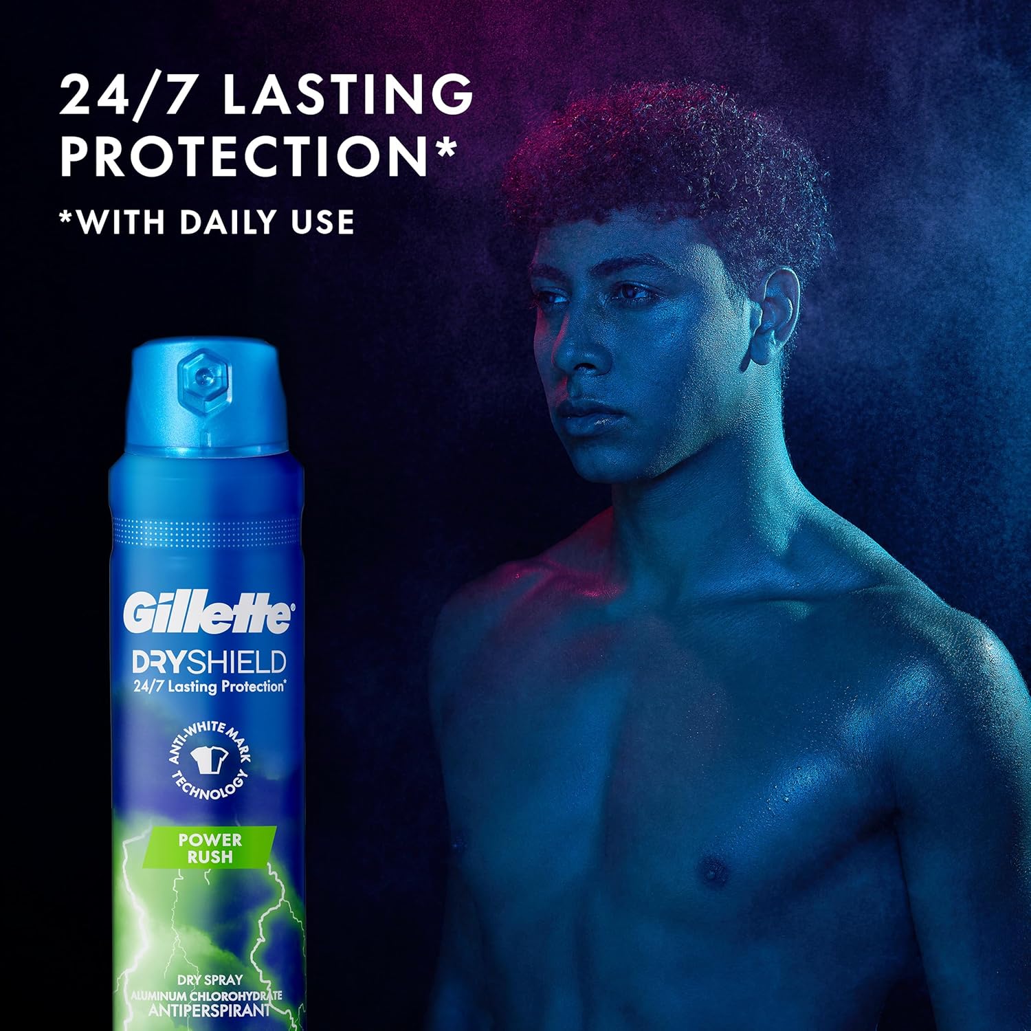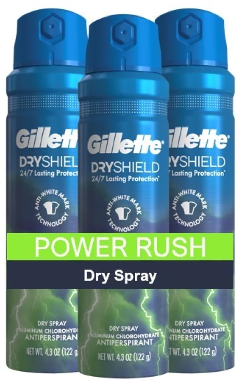 Gillette Dry Spray Antiperspirant And Deodorant For Men Power Rush 4.3 Oz (Pack Of 3)