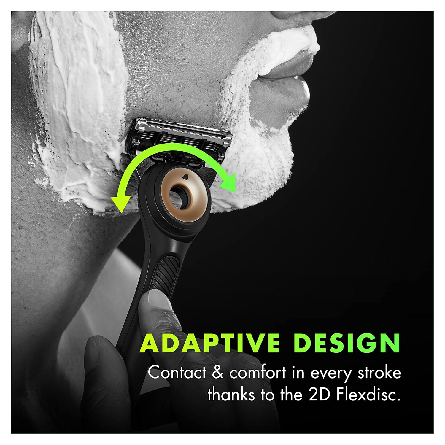 Gillette Labs Men'S Razor With Exfoliating Bar, Shaving Kit Includes 1 Handle, 2 Blade Refills, 1 Premium Magnetic Stand, Black And Gold