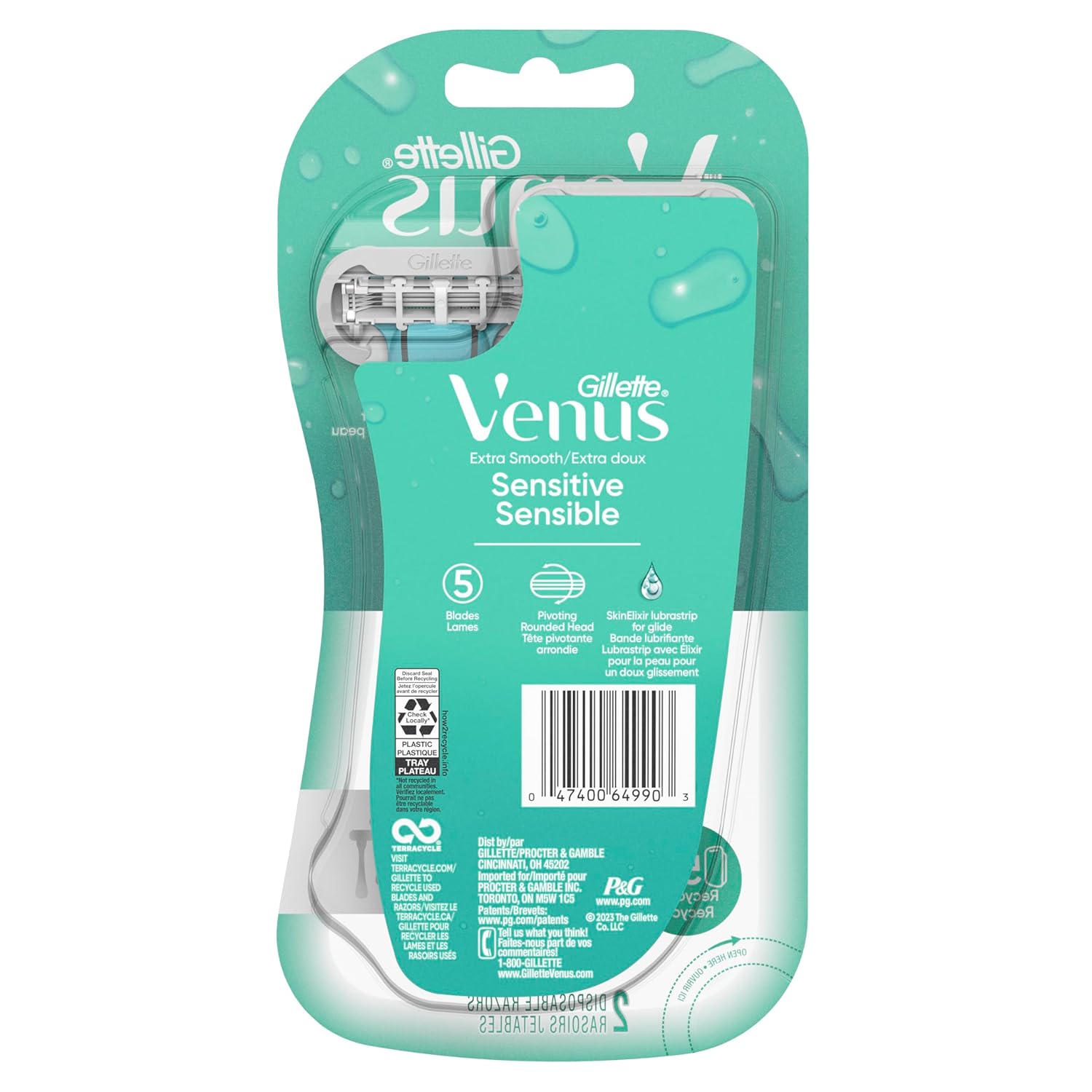 Gillette Venus Extra Smooth Sensitive Disposable Razors For Women With Sensitive Skin, 2 Count