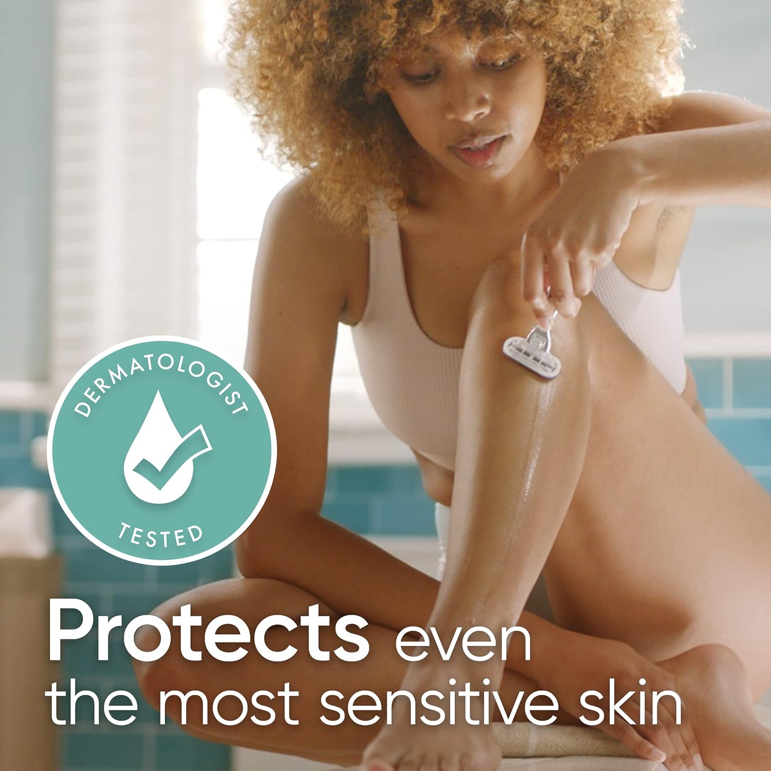Venus female razor blades are designed with a woman’s body in mind. From handles designed for a comfortable grip to pivoting heads that contour to your body, Venus razors are designed to help reveal touchably smooth skin. Venus Deluxe Smooth Sensitive women’s blade refills are perfect for protecting your sensitive skin. These razor blades feature 5 diamond-like coated blades for a long-lasting smooth shave and a SkinElixir lubrastrip for glide that releases a perfect dose of protection you can feel with up to 0% irritation (US Consumer Study Feb 2018). The SkinElixir lubrastrip activates when wet, providing your sensitive skin with a perfect dose of protection from nicks, cuts and irritation while shaving. These blade refills for women also feature a pivoting head that adjusts to your curves, including ankles and knees. No awkwardly angling your razor. Each blade refill lasts up to one month (based on twice/week shave); just use and replace when you're ready for a new one. Did you know that any Venus blade refill fits any Venus razor handle (except Simply Venus and Venus Pubic Hair Razor) Shave your way without buying a whole new Venus handle5 BLADES FOR A LASTING SMOOTH: The razor's 5 diamond-like coated blades, bring a soft, smooth glide to every stroke, to give you a close shave that lasts, and are designed to resist rustFOR SENSITIVE SKIN: This female razor has a SkinElixir lubrastrip with a touch of Aloe Vera for glide, to deliver an extra smooth shave that lasts, with up to 0% irritation (US Consumer Study Feb 2018). Dermatologically recommended for sensitive skin10X MORE LUBRICATION FOR PROTECTION: The water-activated ribbon of moisture provides 10x* more lubrication to guard your skin against nicks, cuts and irritation. *vs Simply3 Sensitive30 DAYS OF SMOOTH SHAVES: Each blade refill lasts up to 30 days of smooth shaves (based on twice/week shave)