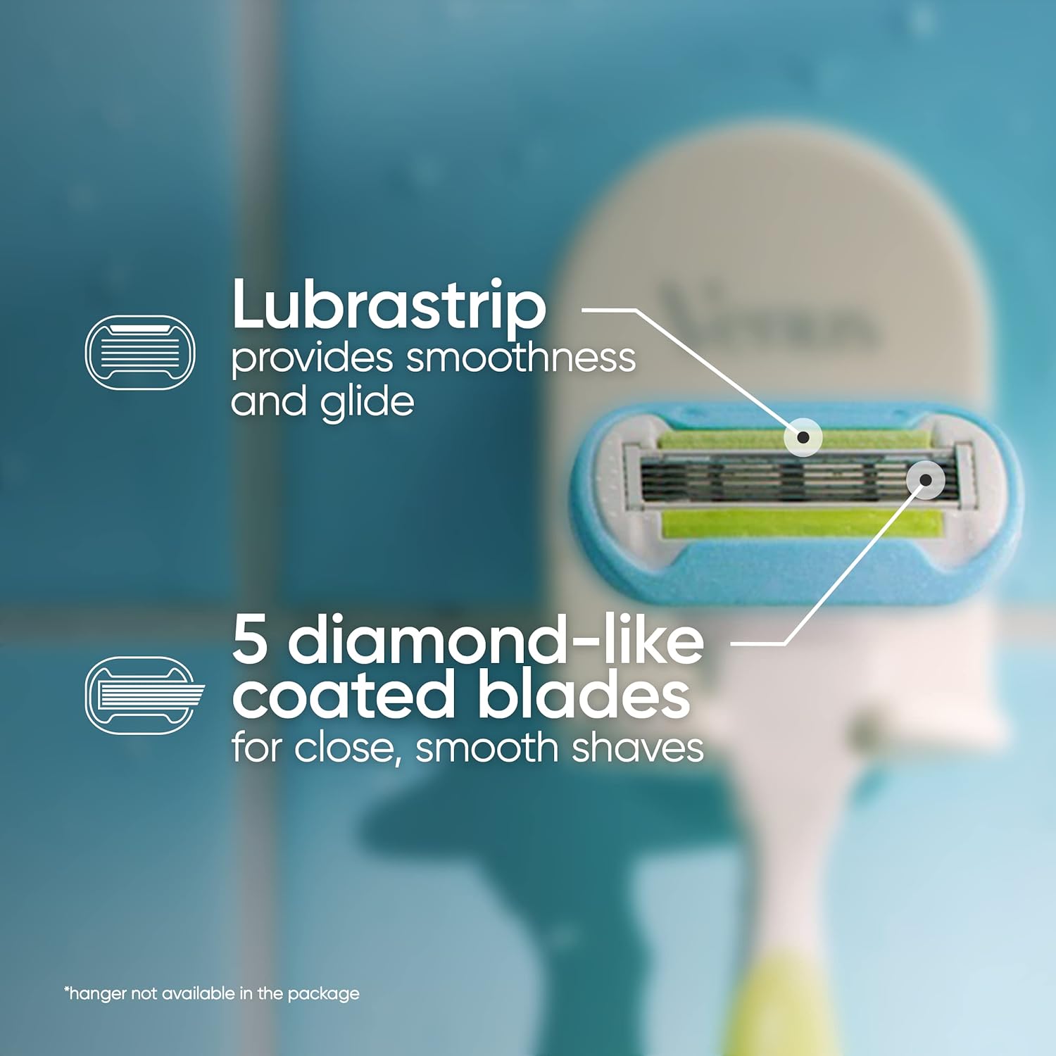 Venus female razors for women are designed with a womanâs body in mind. From handles designed for a comfortable grip to pivoting heads that contour to curves, Venus razors are designed to help reveal touchably smooth skin. Venus Extra Smooth womenâs razors deliver a close, controlled shave. These razor refills have 5 diamond-like coated blades for an extra smooth shave that lasts. Each blade refill lasts up to one month (based on twice/week shave); just use and replace when you're ready for a new one. These female razor blades cut hair closer to the skin, for a longer-lasting smooth (vs Venus Smooth 3 bladed razor for women). The bladeâs water-activated ribbon of moisture helps protect from nicks and cuts. These razor refills have a pivoting head that adjusts to your curves, including ankles and knees. No awkwardly angling your razor. Did you know that any Venus blade refill fits any Venus razor handle (except Simply Venus and Venus Pubic Hair Razor) Shave your way without buying a whole new Venus handle5 BLADES FOR A LASTING SMOOTH: These womenâs razor refills have 5 blades to deliver an extra smooth shave that lastsDURABLE DESIGN: Each blade refill lasts up to one month (based on twice/week shave); just use and replace when you're ready for a new oneADAPTIVE DESIGN: These razor refills have a pivoting head that adjusts to your curves, including ankles and knees. No awkwardly angling your razorEFFICACY: This female razor's diamond-like blade coating and ribbon of moisture bring a smooth glide to every stroke, closely cutting hair with ease