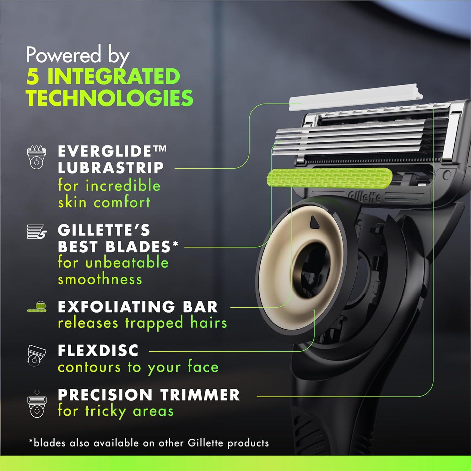 About this item WITH EXFOLIATING BAR: built-in to the handle, the exfoliating bar releases trapped hairs before the blades pass LONG LASTING BLADES: GilletteLabs blades last up to 30 shaves per refill and up to 50% longer than Fusion UNBEATABLE SMOOTHNESS thanks to 5 of Gillette's Best Blades* (*blades also available on other Gillette products) ADAPTIVE DESIGN: 2D FlexDisc contours to your face for comfort in every stroke EVERGLIDE Lubrastrip provides lubrication for incredible skin comfort  See more product details,WITH EXFOLIATING BAR: built-in to the handle, the exfoliating bar releases trapped hairs before the blades pass,LONG LASTING BLADES: GilletteLabs blades last up to 30 shaves per refill and up to 50% longer than Fusion,UNBEATABLE SMOOTHNESS thanks to 5 of Gillette's Best Blades* (*blades also available on other Gillette products),ADAPTIVE DESIGN: 2D FlexDisc contours to your face for comfort in every stroke,EVERGLIDE Lubrastrip provides lubrication for incredible skin comfort