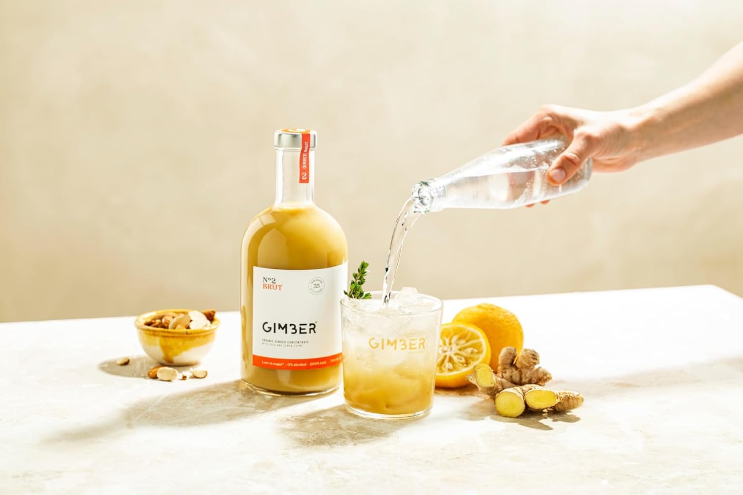 Gimber Organic Ginger Concentrate 500Ml | Less Sugar | Alcohol-Free | Made From Ginger, Yuzu Fruit & Lemon Thyme | 10 Pieces (1 Bottle Per Piece)