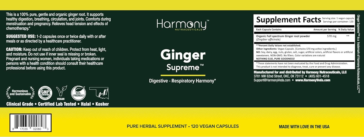 Ginger Supreme - Respiratory Harmony Harmony Nutraceuticals Supplement For Healthy Digestion, Breathing, Circulation,