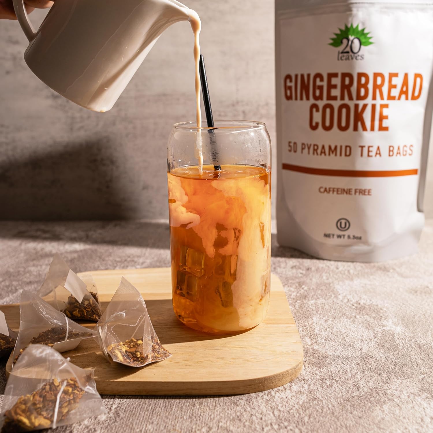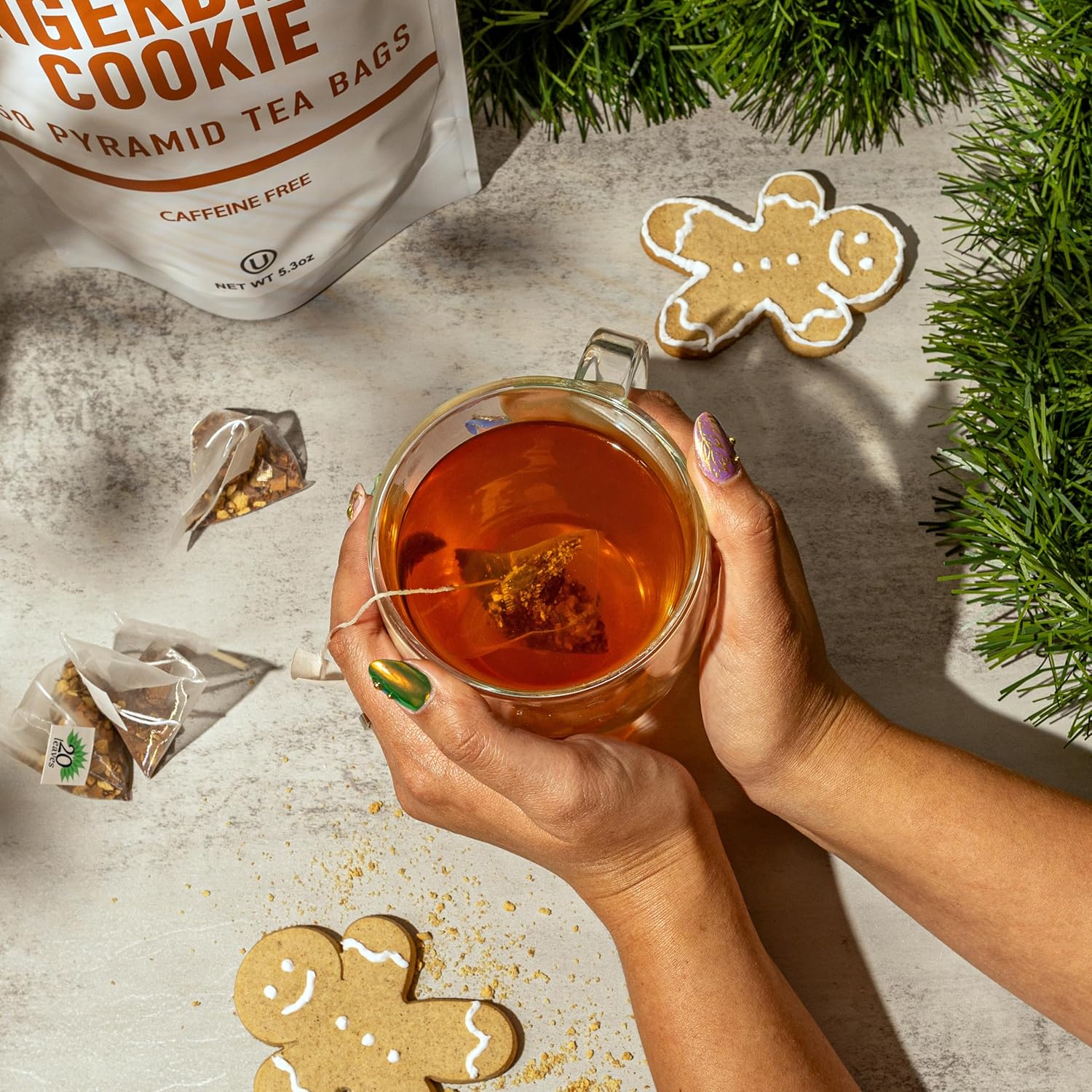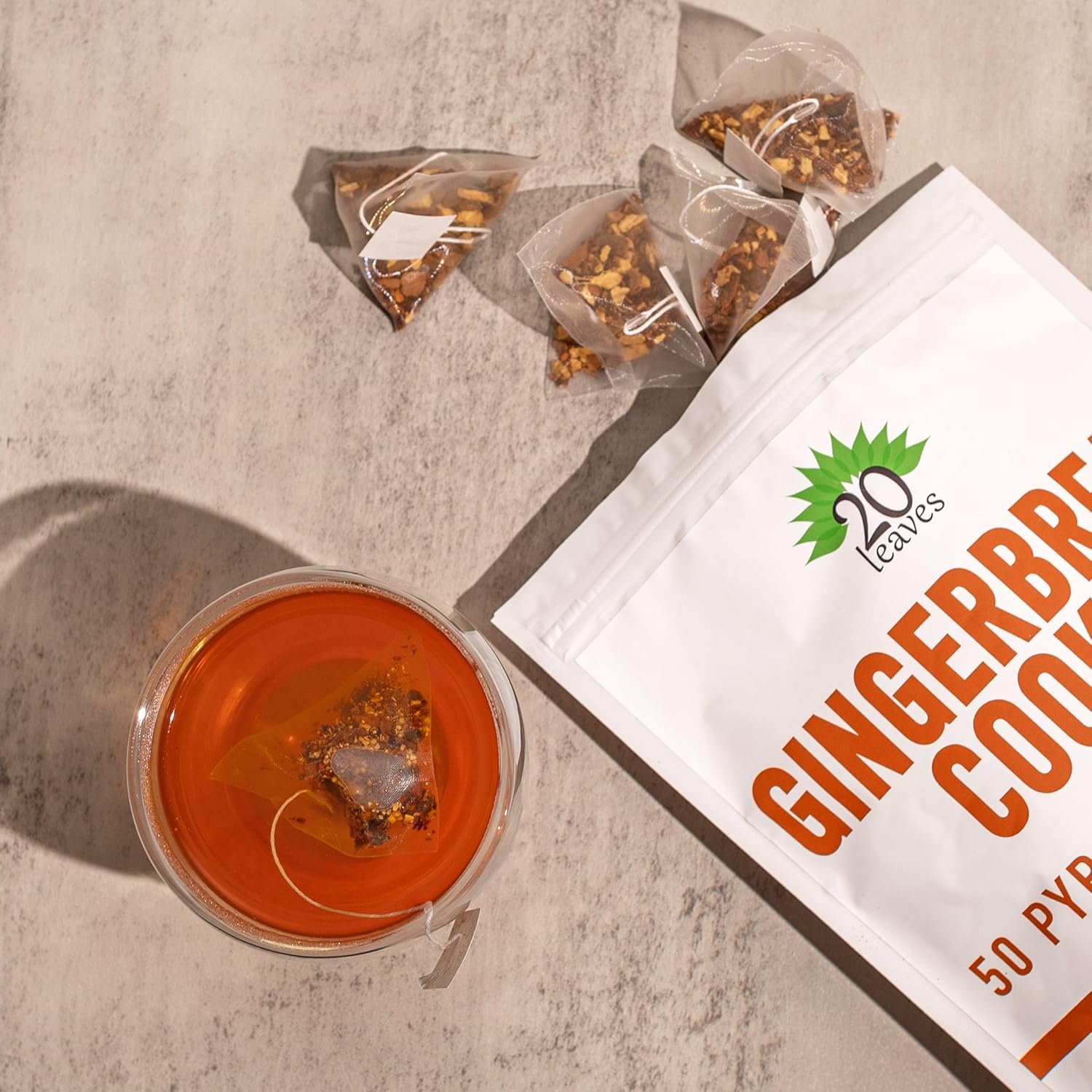 Gingerbread Cookie Dessert Tea Made With Rooibos Herbal Tisane - Caffeine And Sugar Free - 50 Pyramid Tea Bags Sachets In A Resealable Bag