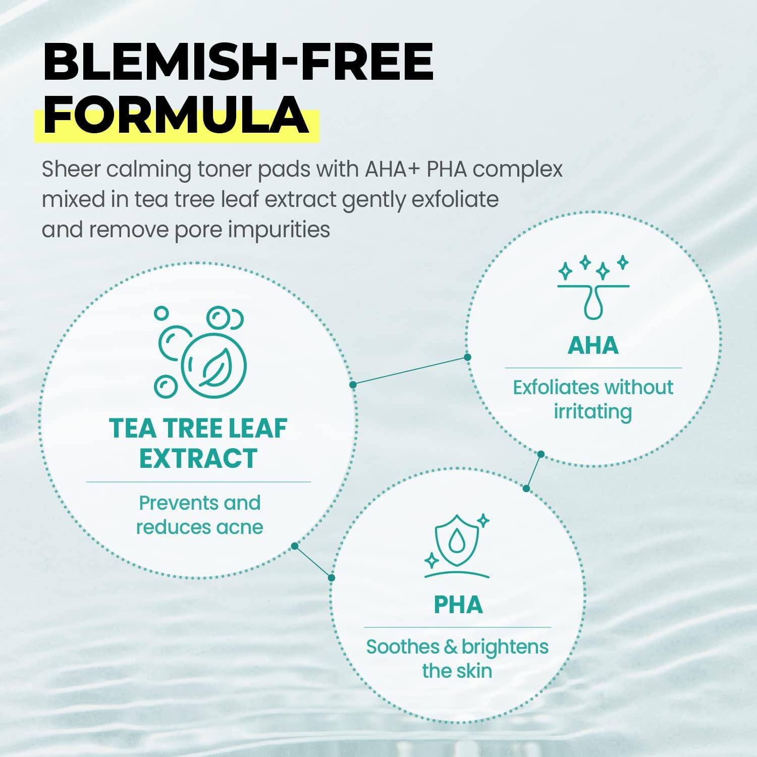 Glam Up AHA PHA Trouble Care Toner Pads | Calming, Exfoliating, Pore Cleansing Korean Skincare Toner Pads for Sensitive Skin | Vegan Bamboo Cotton Face Gauze (65 Pads)